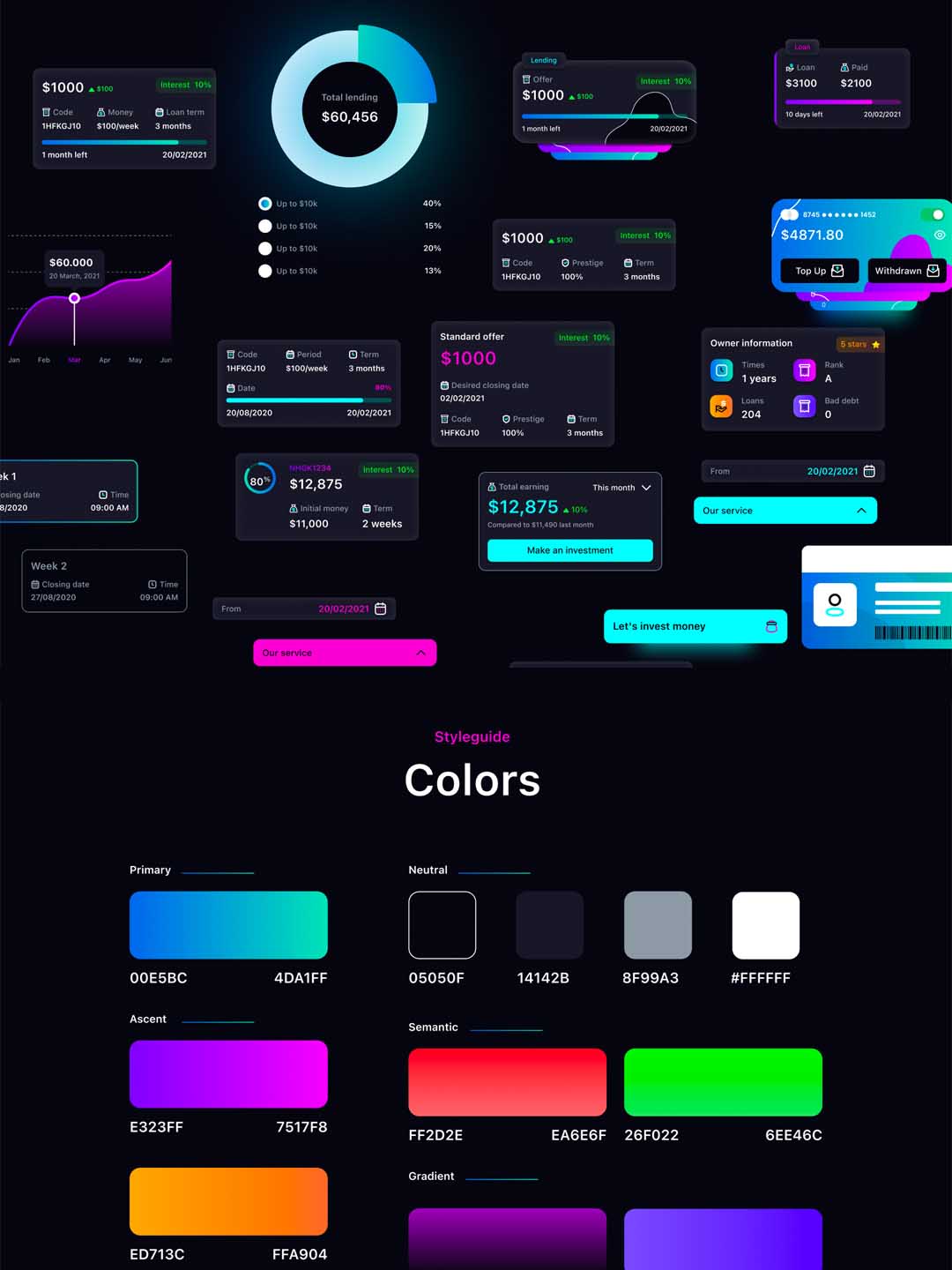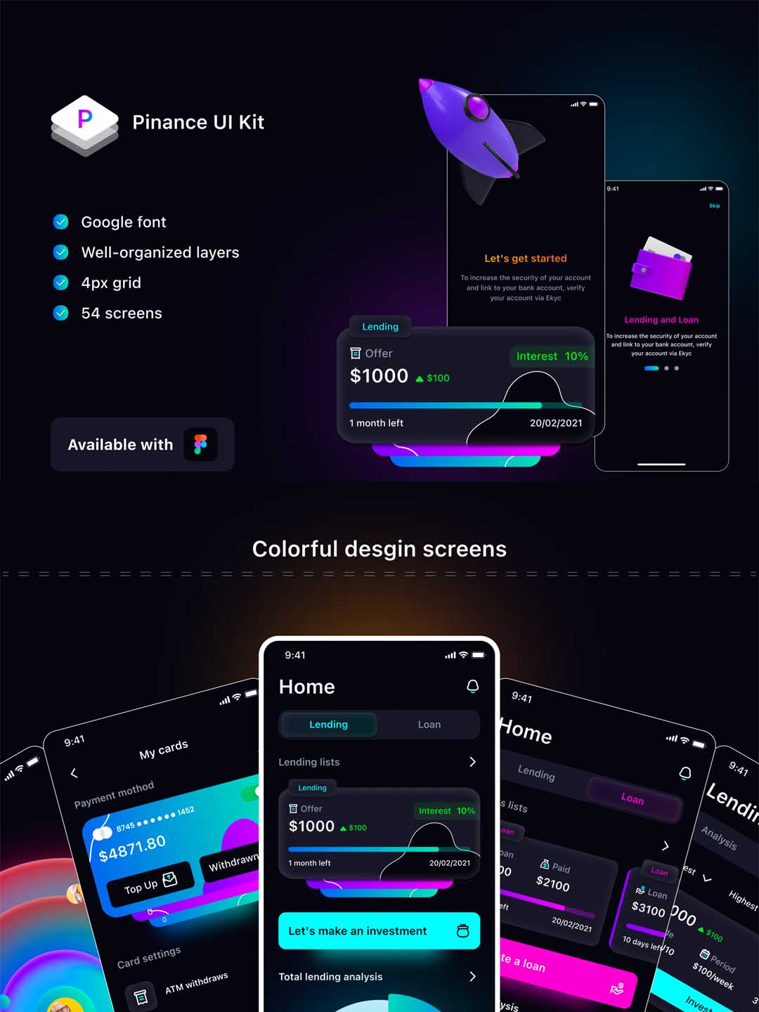 40页暗色炫酷风格金融,电子钱包UI素材figma源文件