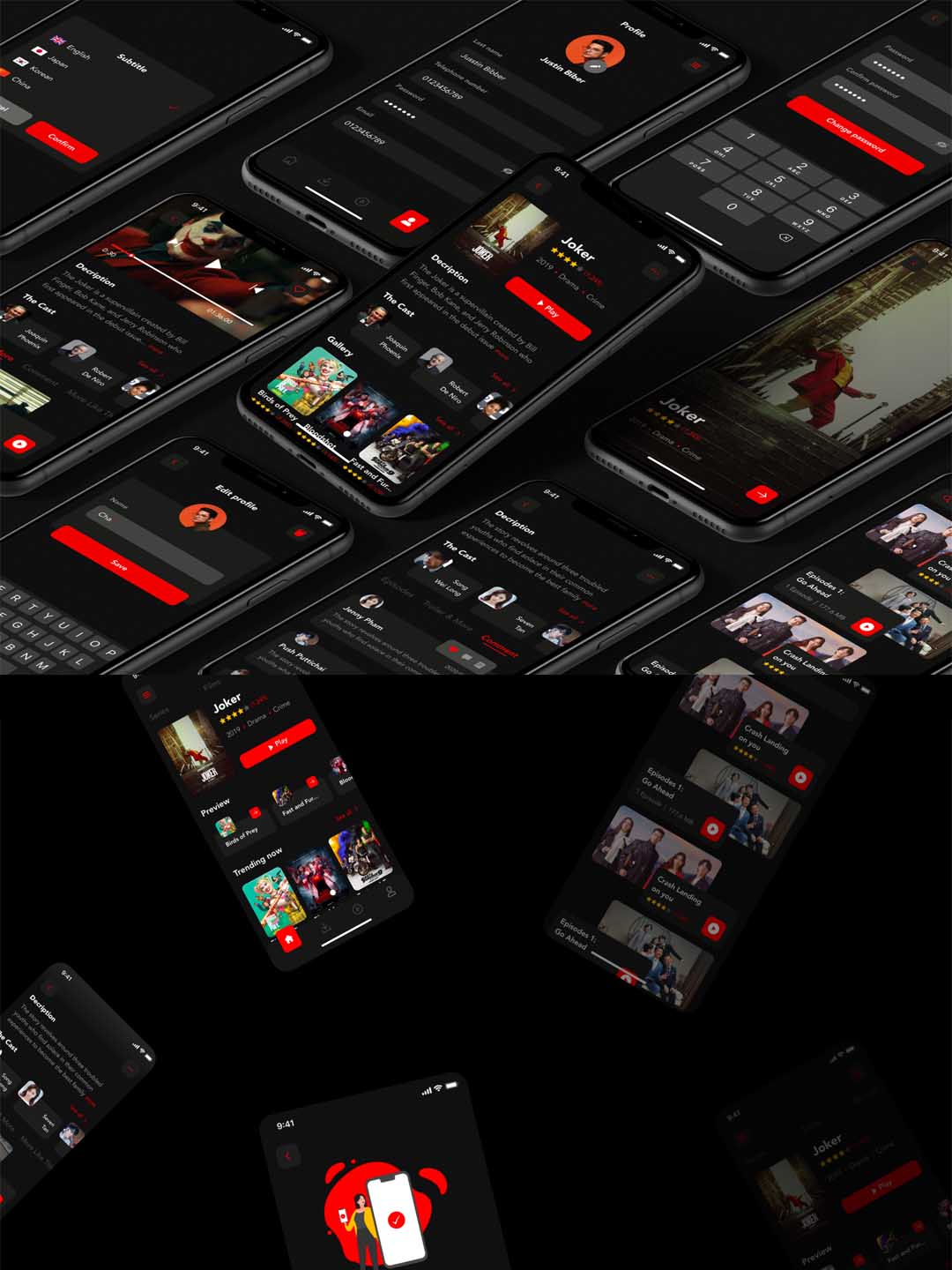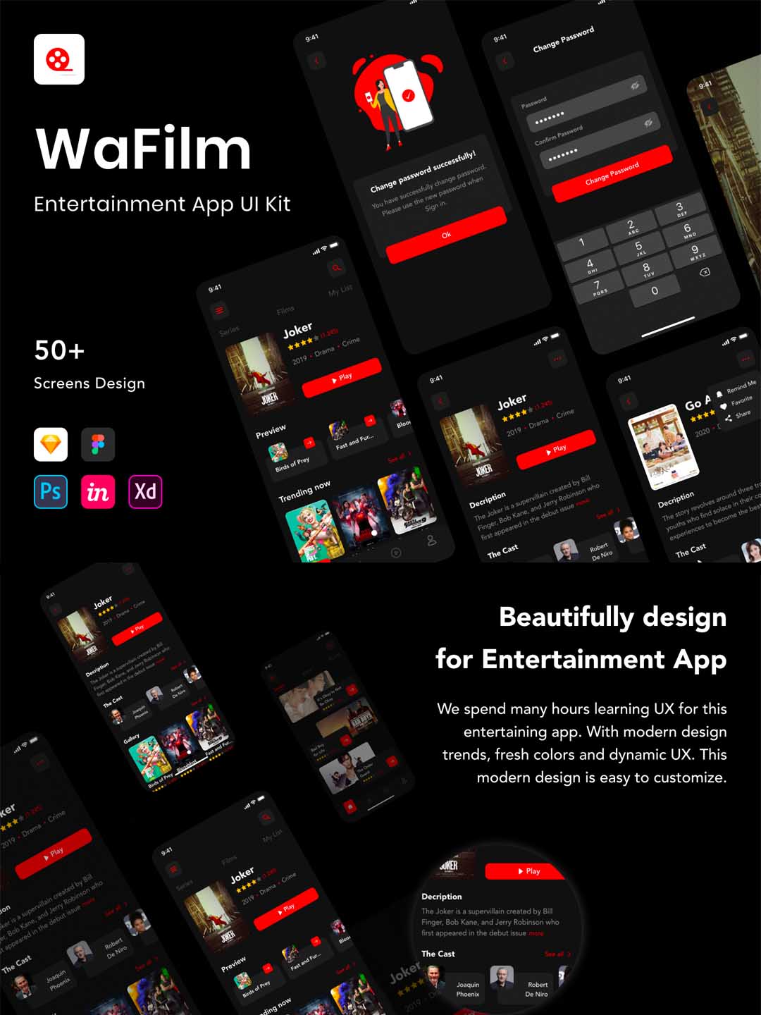50页超酷电影app UI界面设计xd,sketch,fig,psd,studio格式