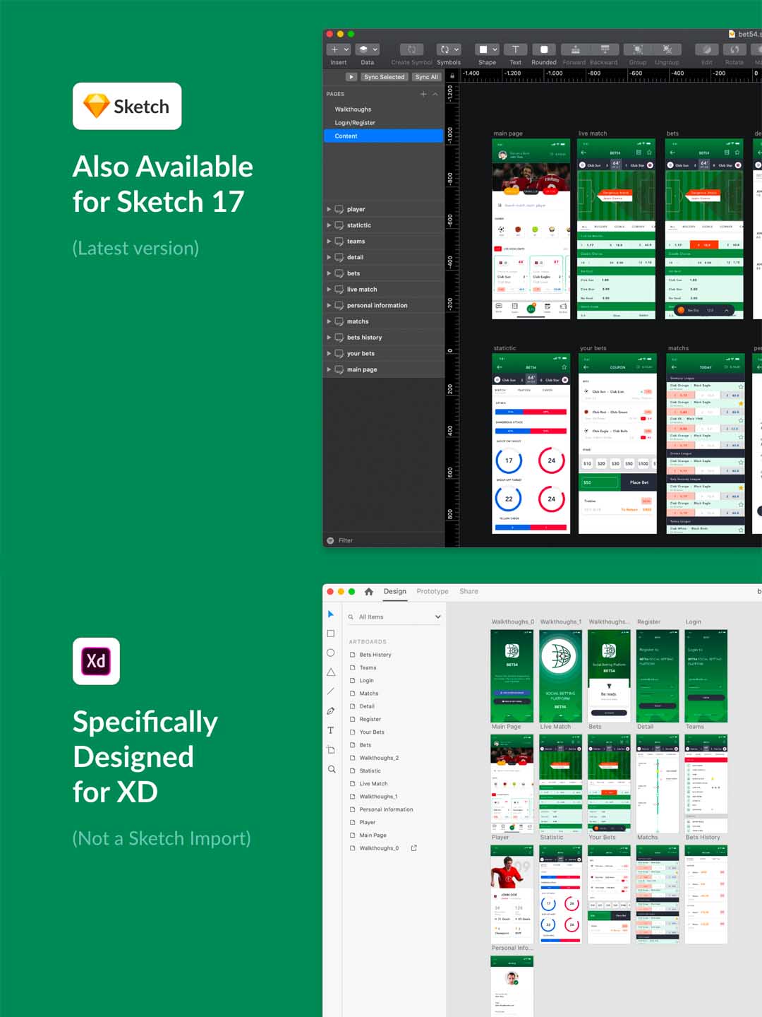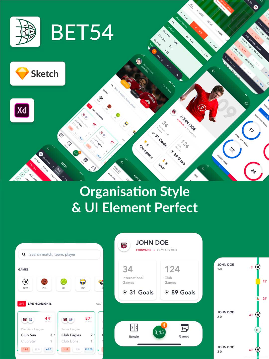 32页体育赛事app ui素材sketch、xd源文件