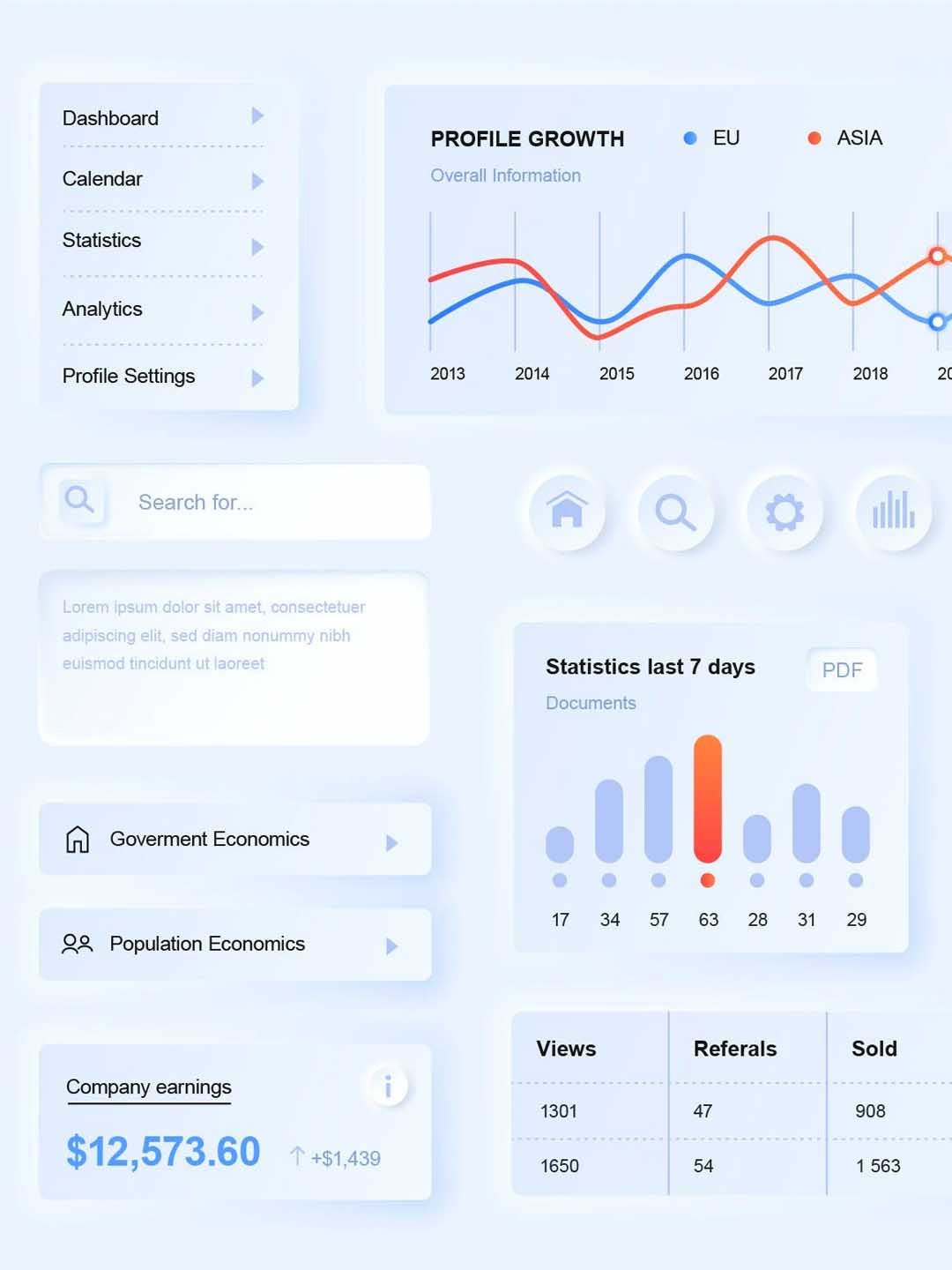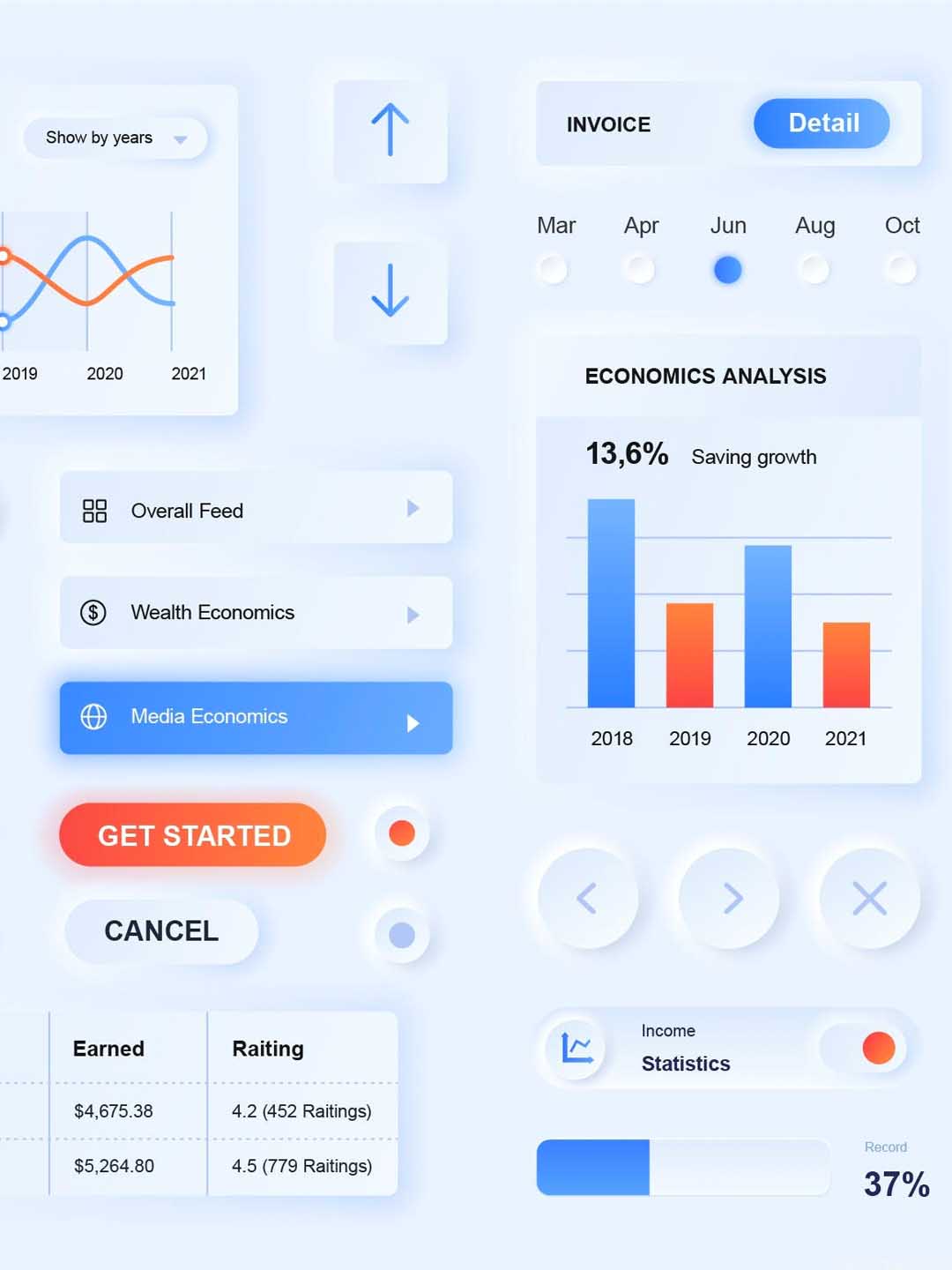 Neumorphism新拟物风格,数据类金融数据可视化UI ai,eps源文件