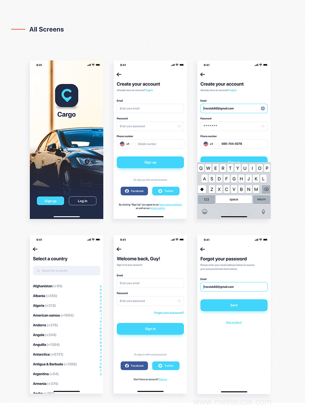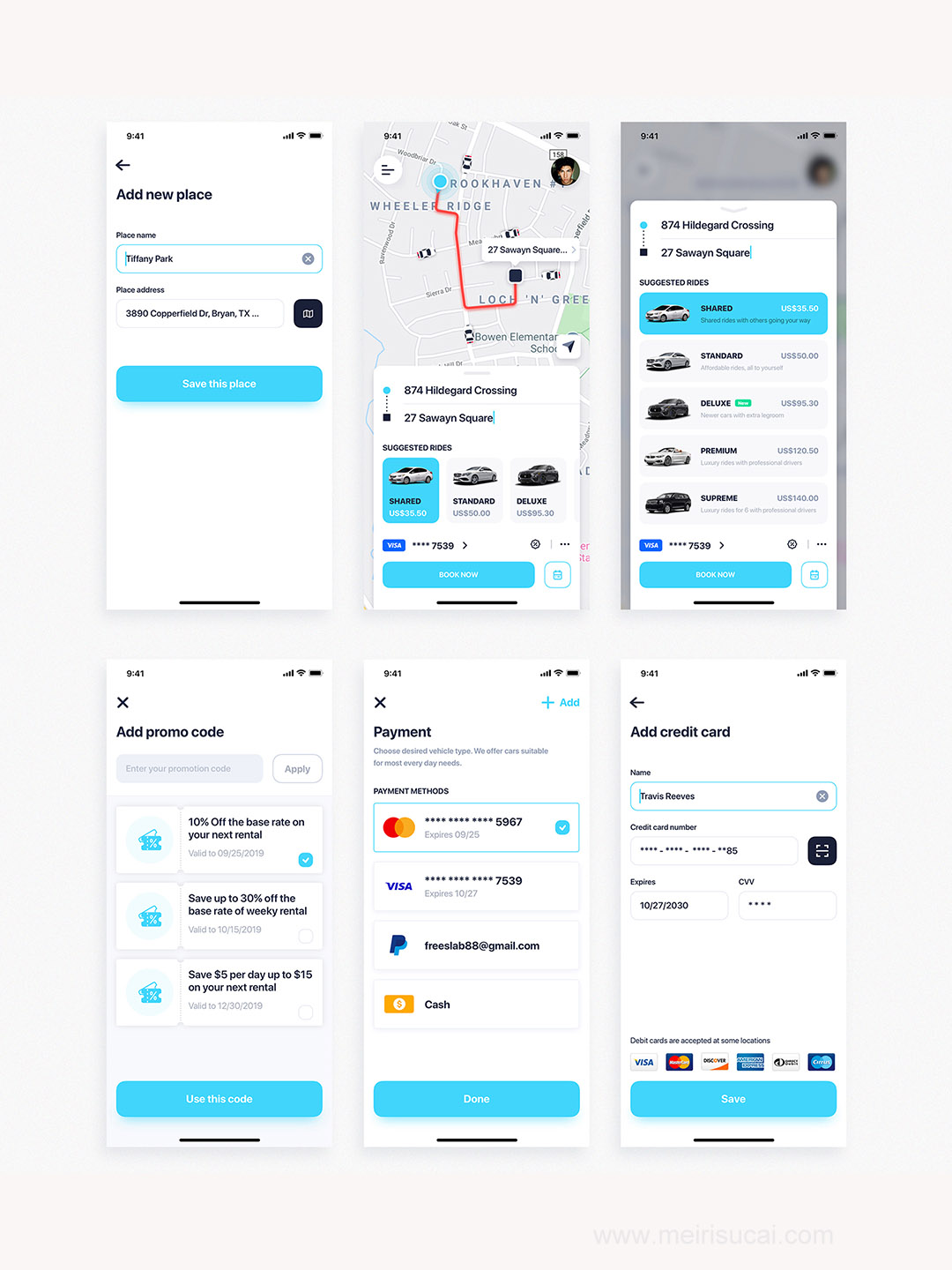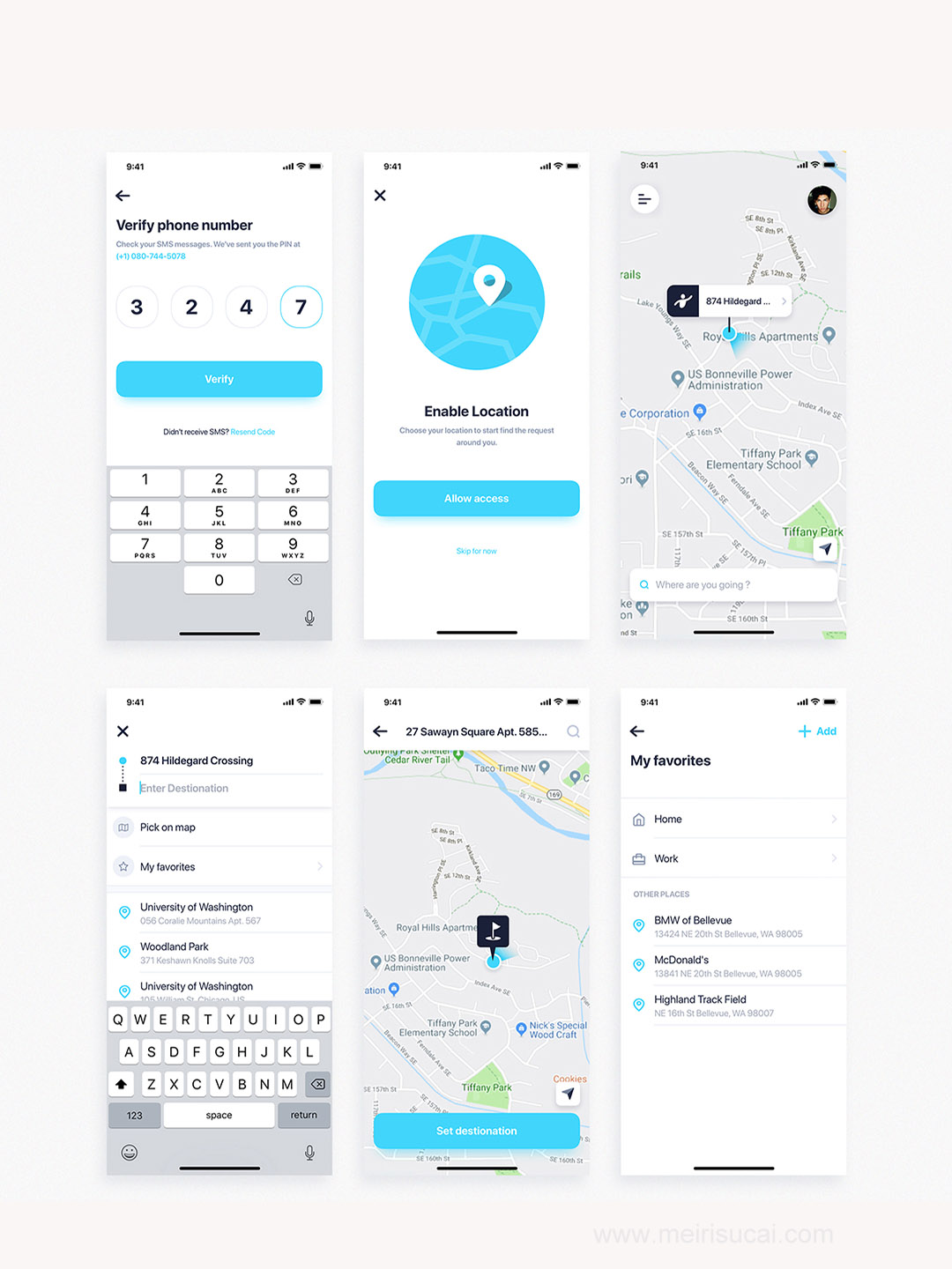 洗衣应用程序 UI 套件,具有完整的洗衣服务预订流程。此资源包括 40 多个页面,sketch格式