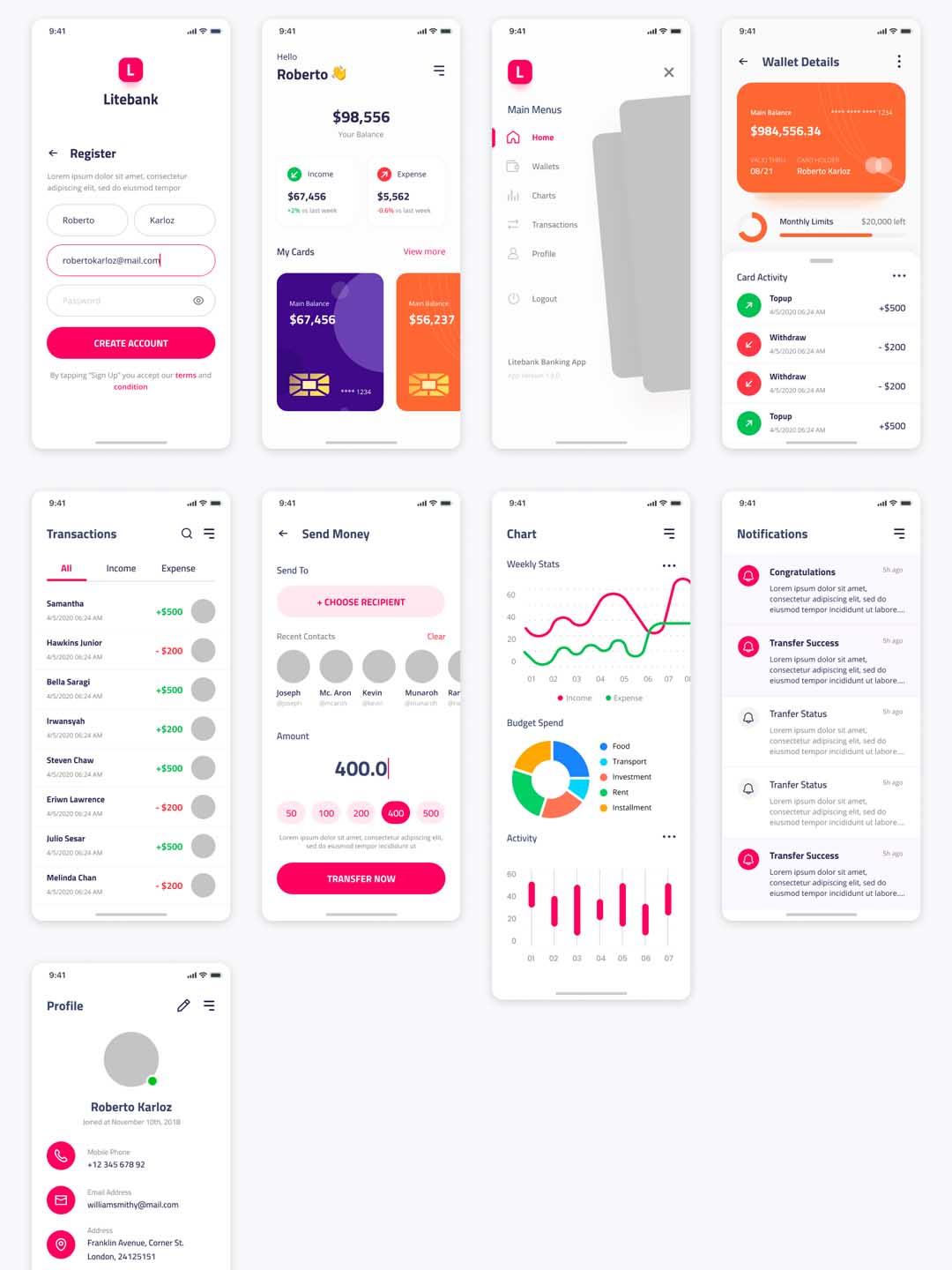 40页费用跟踪app设计,屏幕尺寸:iPhone X (375x812px)xd,sketch源文件