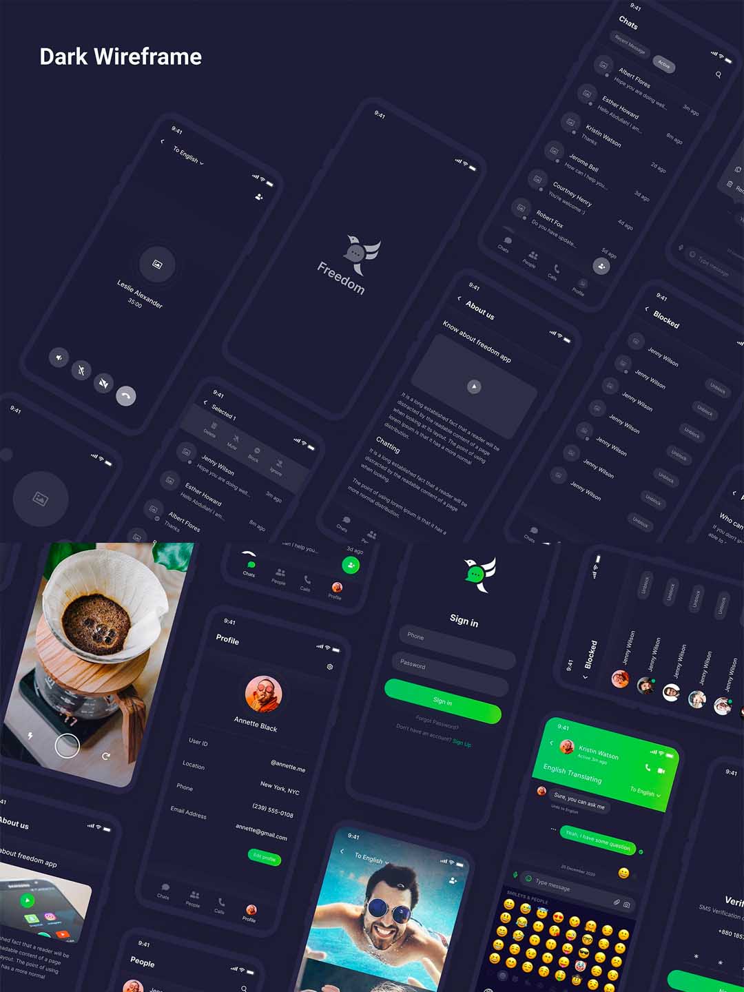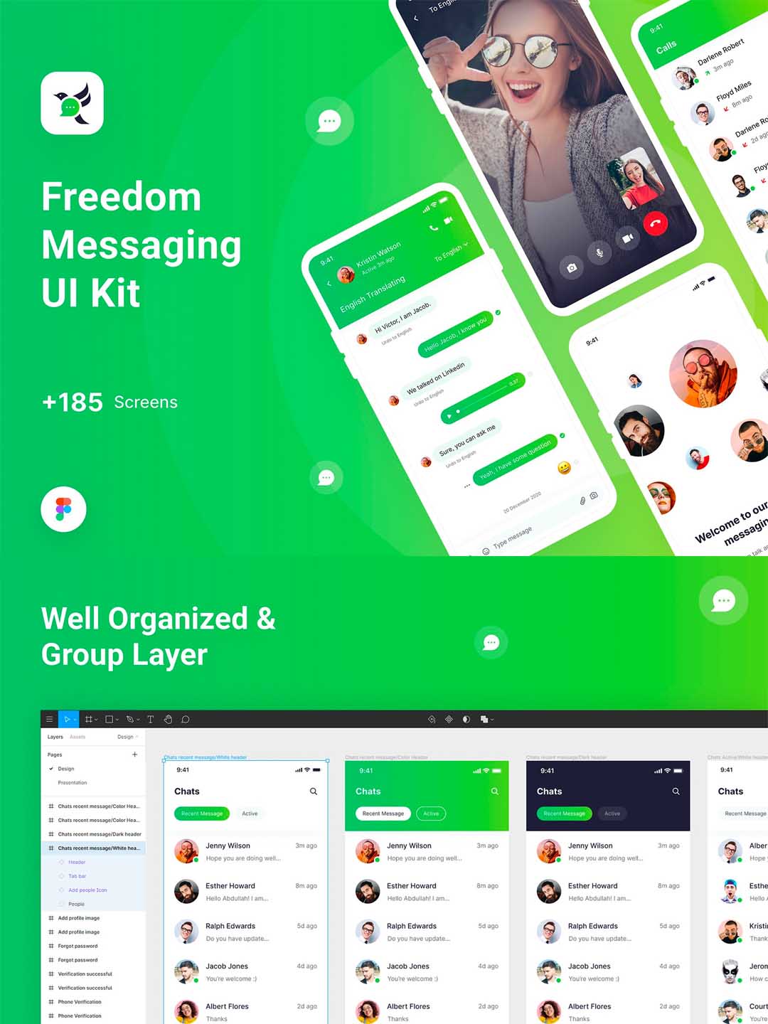 185页即时通讯,亮暗色模式社交聊天app UI figma源文件