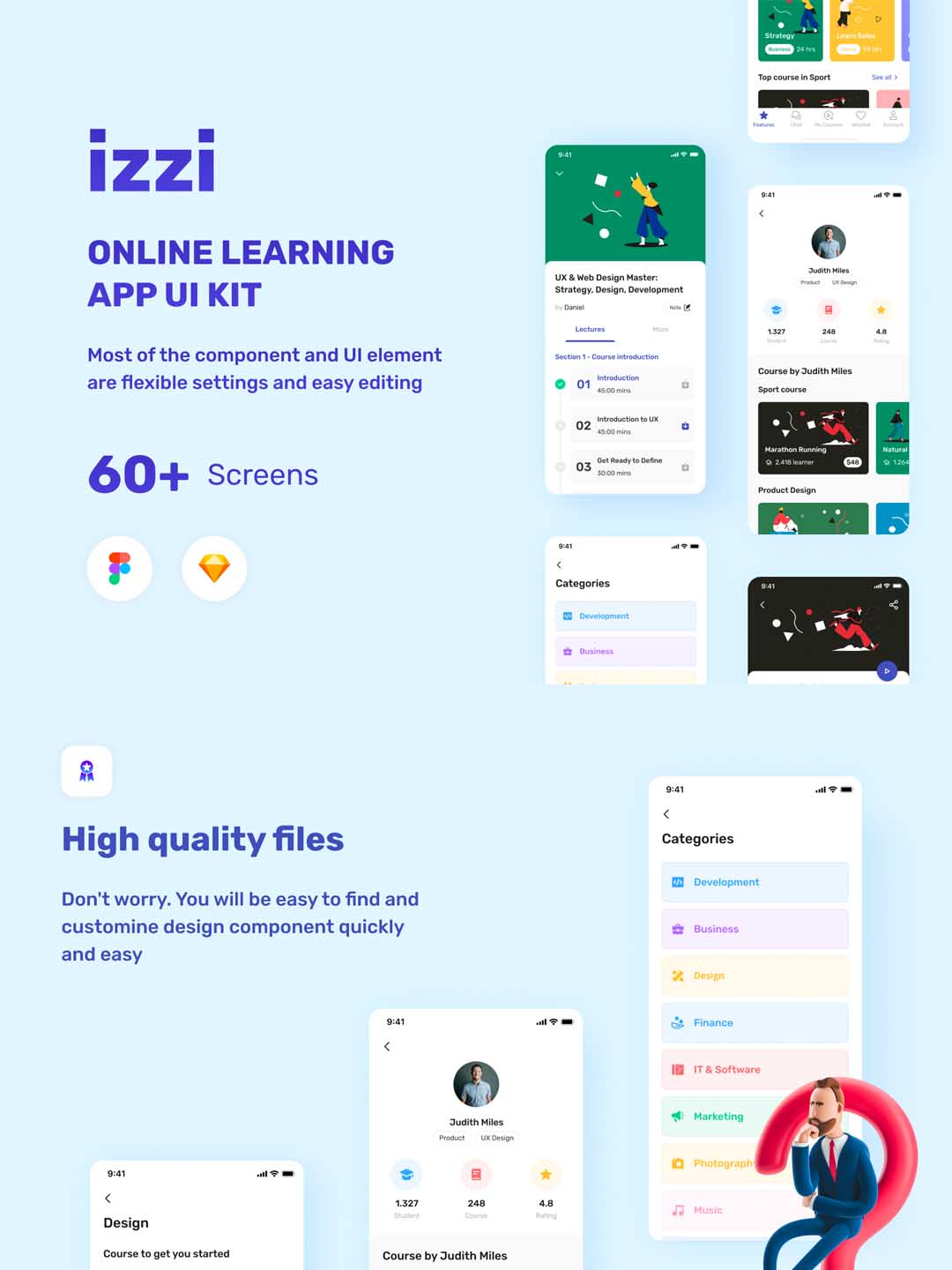 整套在线教育APP UI源文件,在线学习UI资源下载60多页知识付费app UI素材sketch、figma源文件