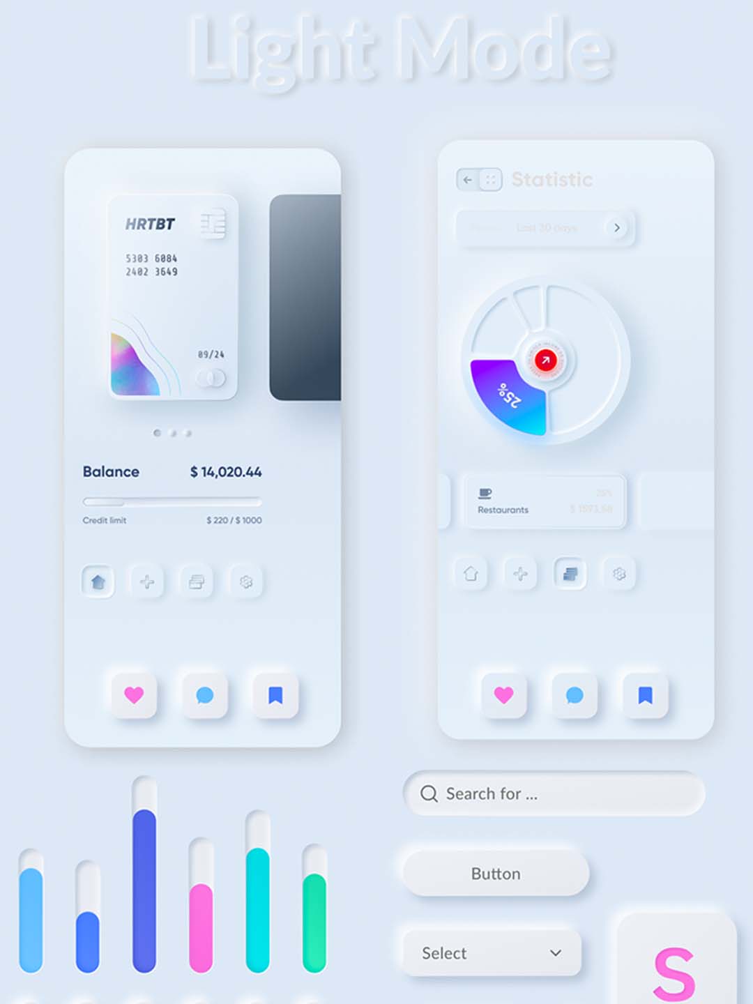 明暗双色新拟物风格UI源文件下载,Neumorphic风格UI资源下载,figma源文件下载