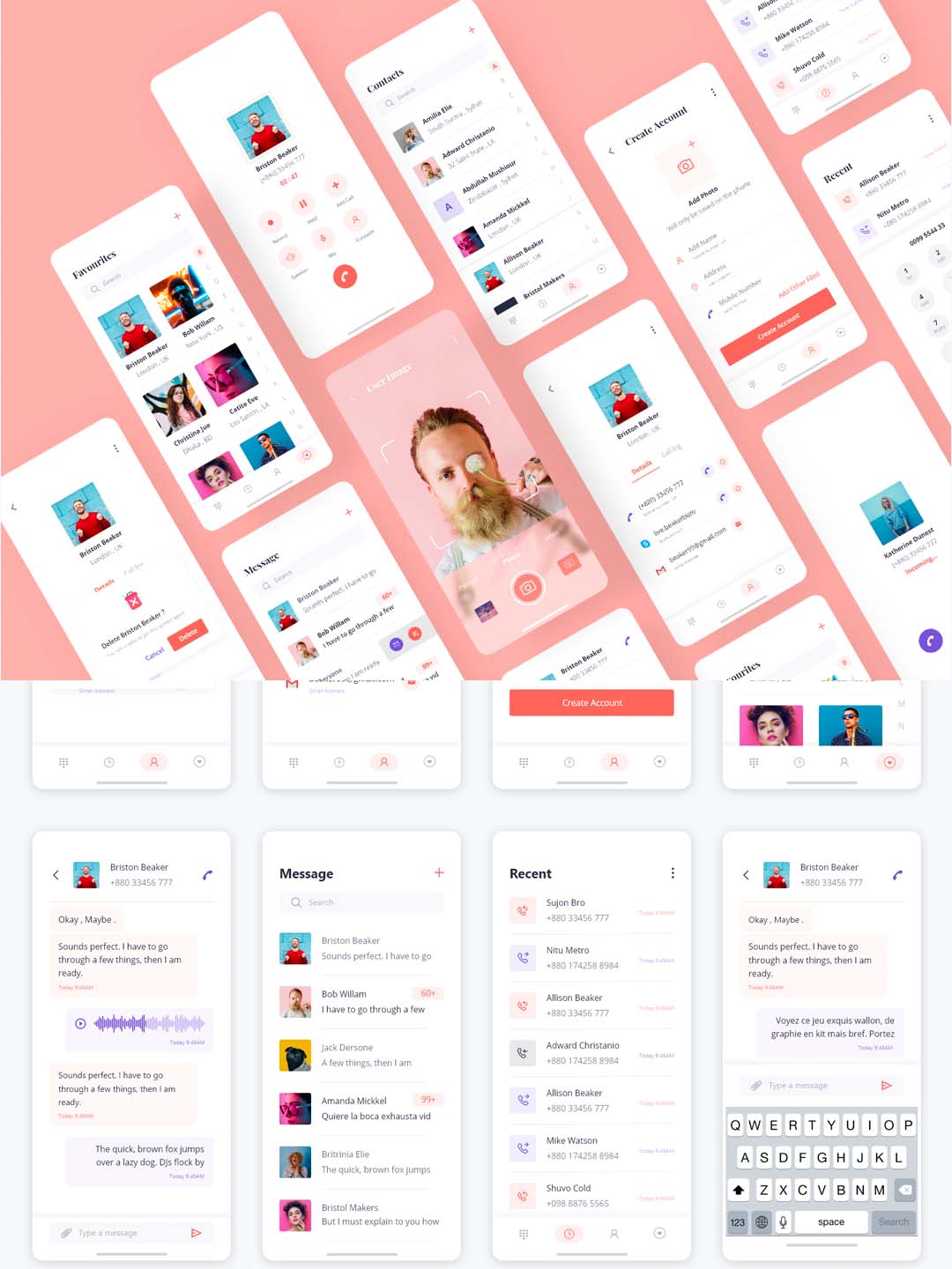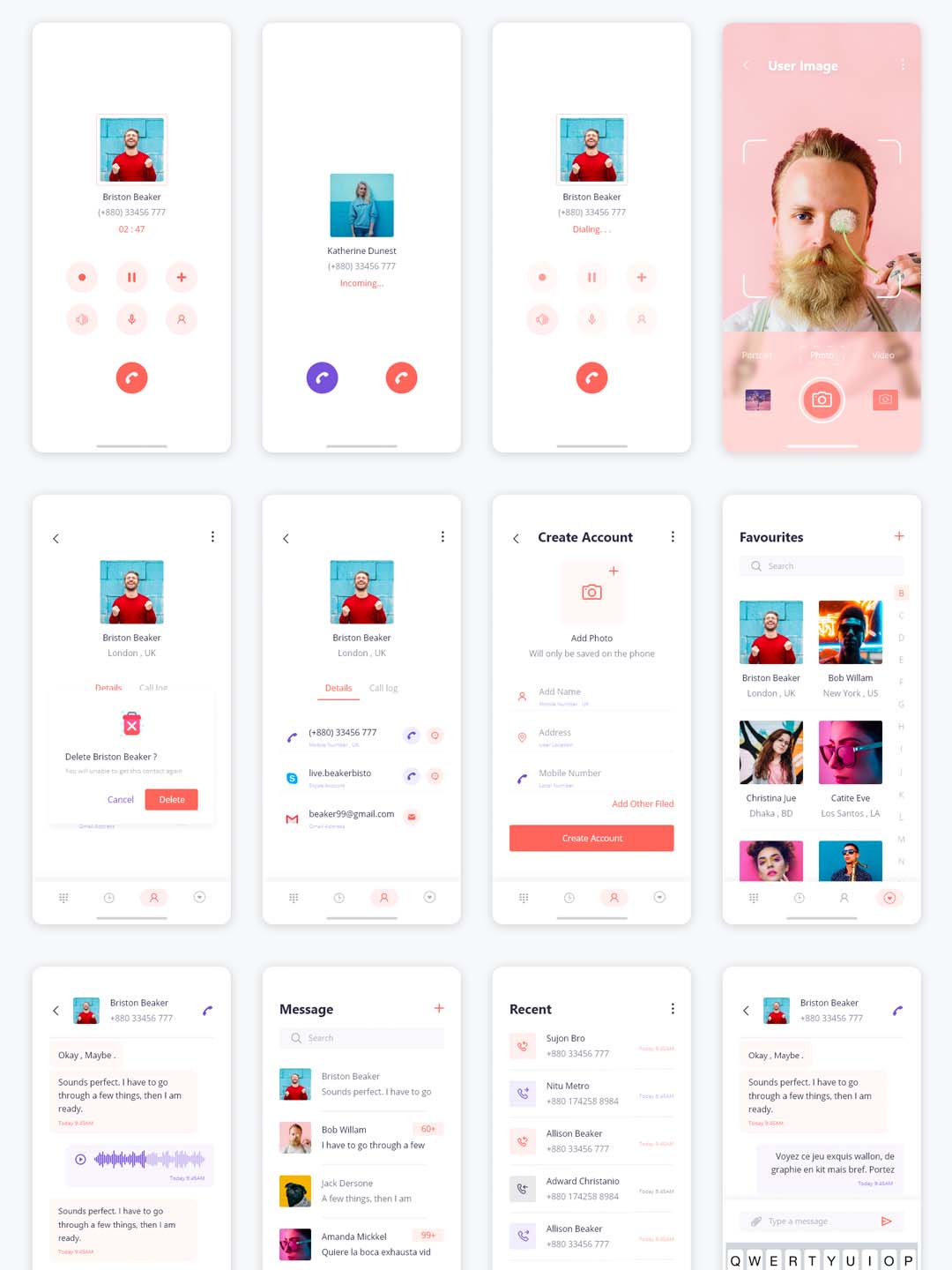 聊天,社交,视频通话UI素材下载xd源文件下载
