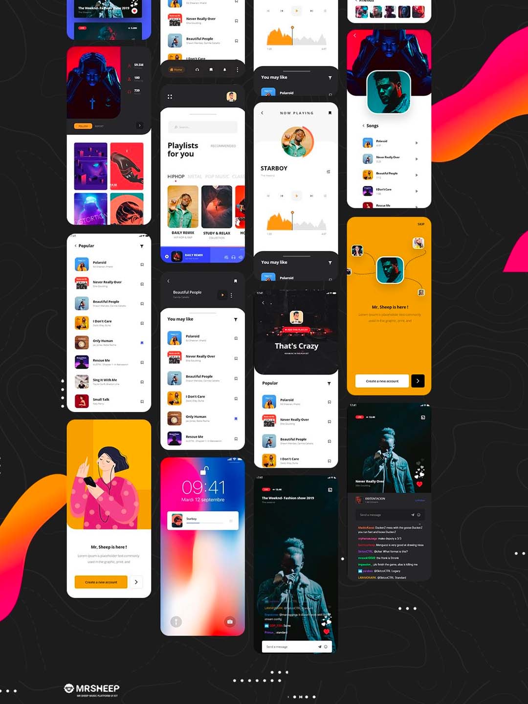 一套音乐APP UIkit下载,暗色系音乐APP UI资源下载,音乐UI源文件下载,音乐类UI素材xd源文件下载
