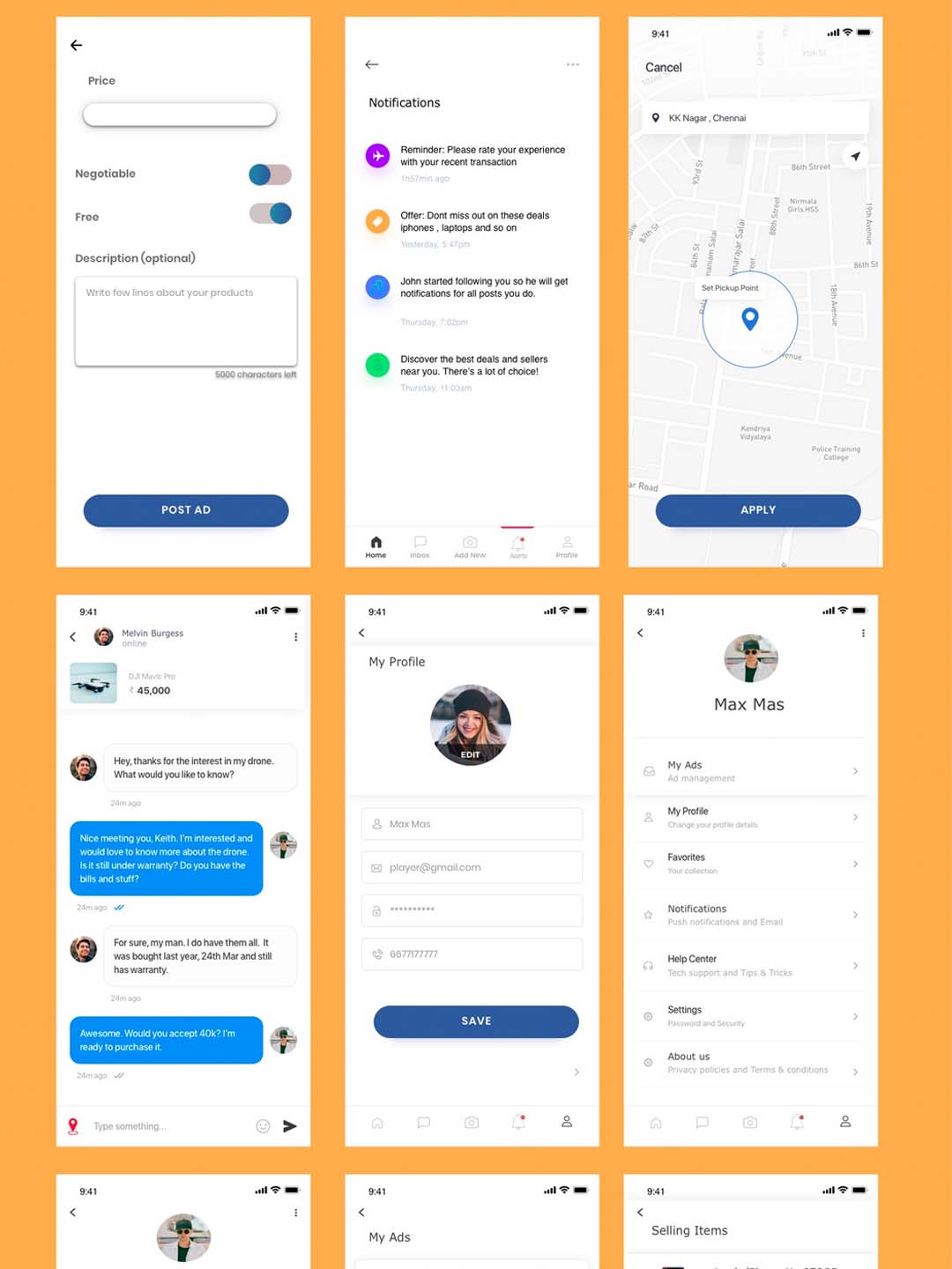 Ins风照片分享、社交、买卖App应用 UI 界面sketch源文件下载