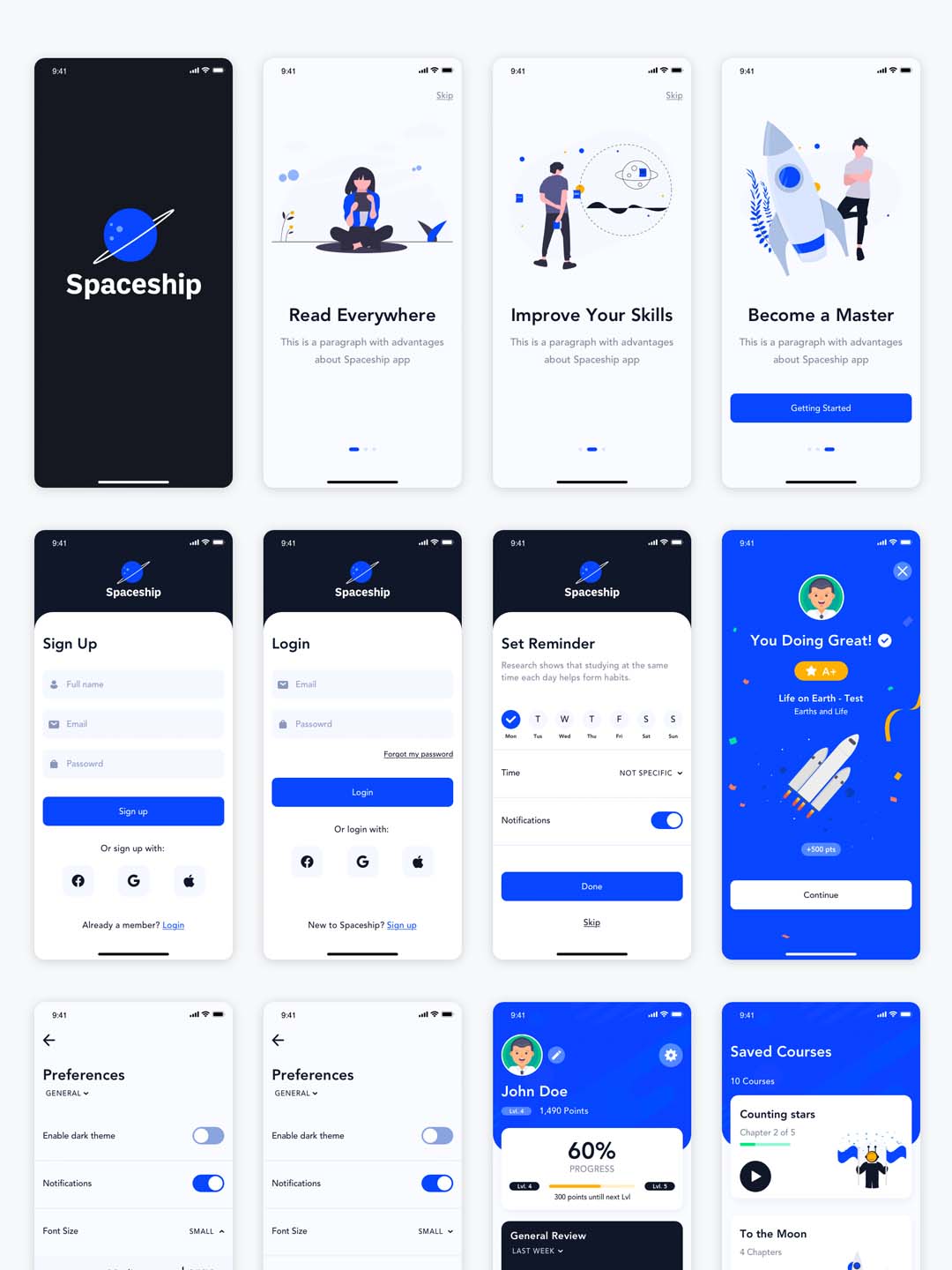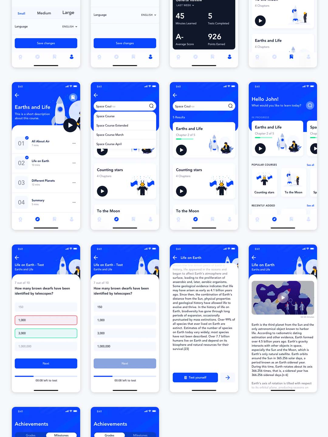 5 个屏幕的教育app应用程序,用于探索、学习和参加课程。sketch格式