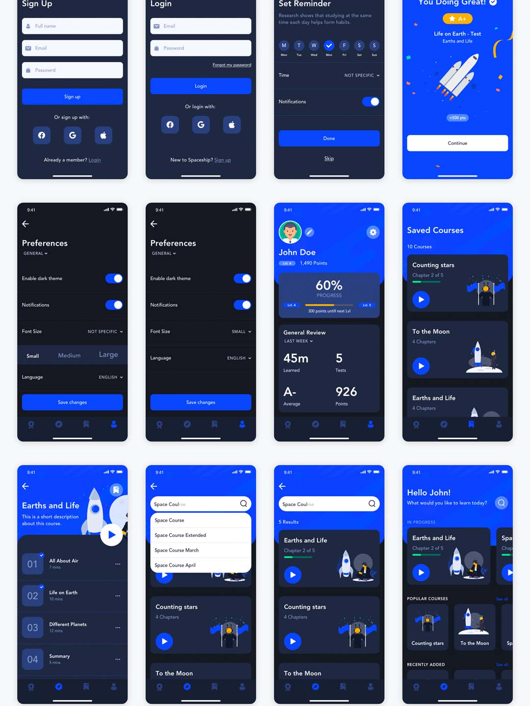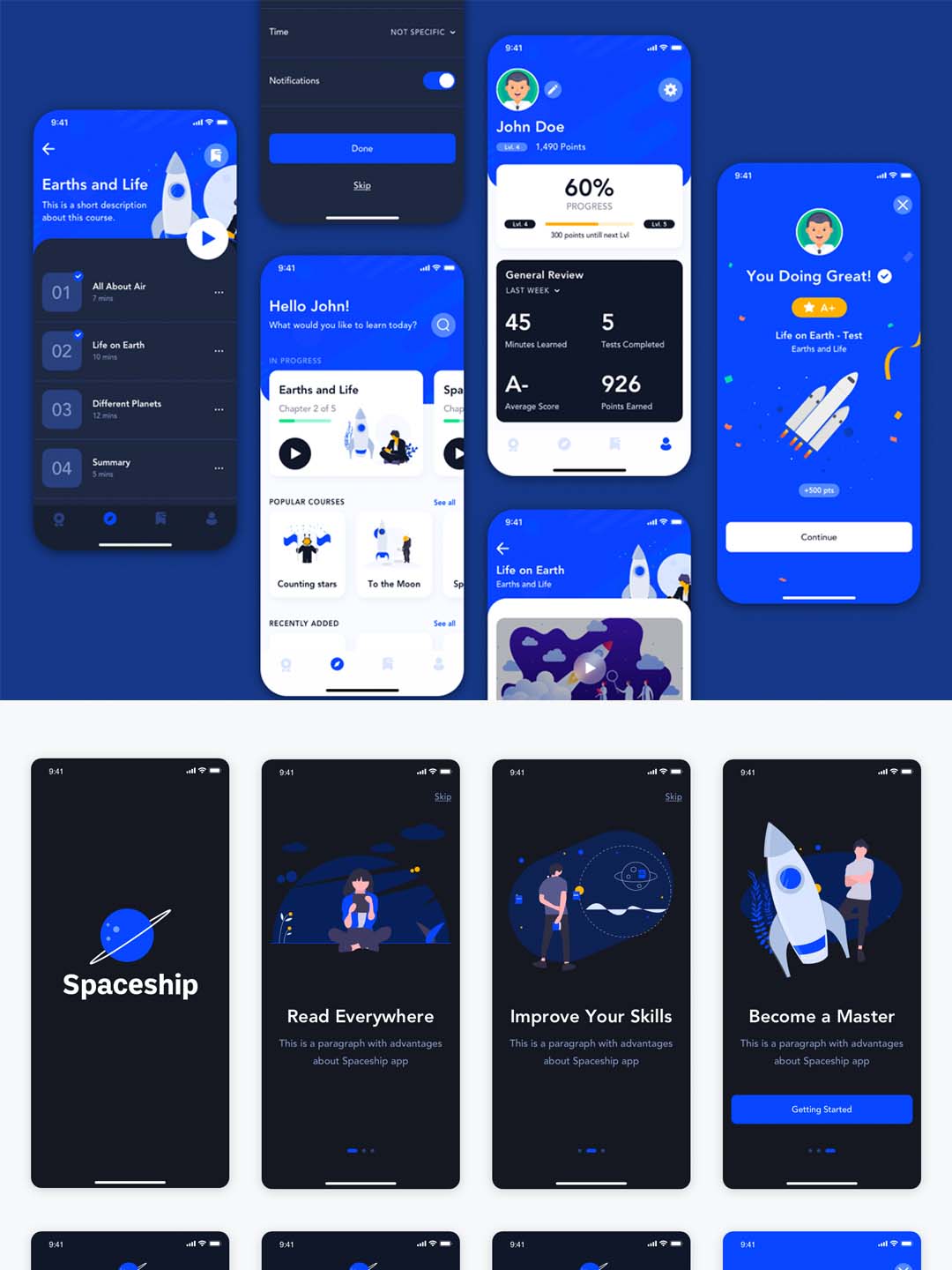 明暗两种风格在线学习UI资源下载,在线教育UI源文件下载,线上学习UI资源sketch源文件