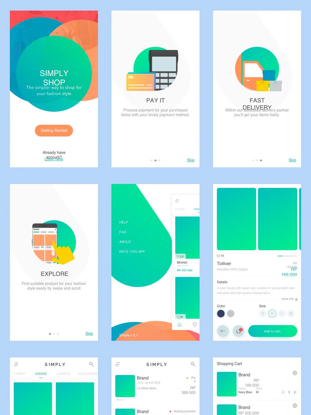 全套APP高端电商清新多界面时尚购物平台UI界面、UI kit sketch源文件下载