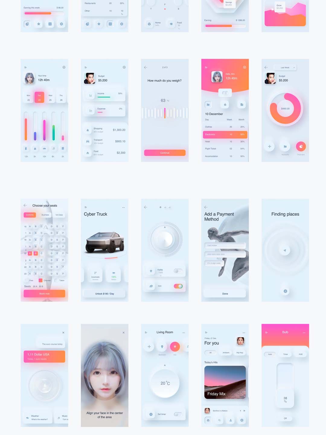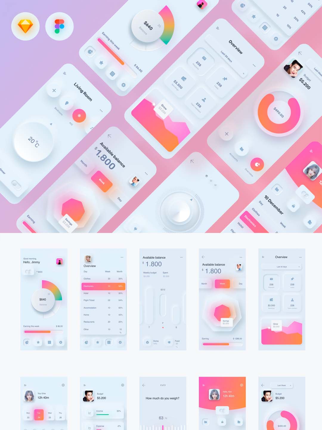 6个类别60个新拟物, Neumorphic风格sketch,fimga UI源文件