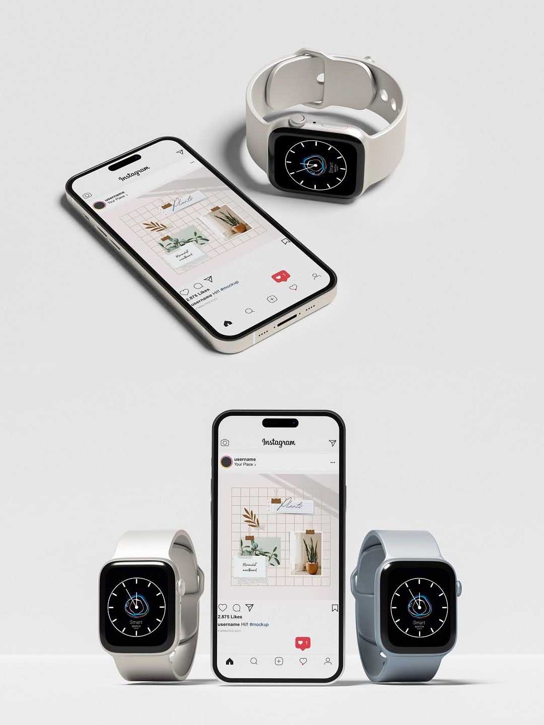 iPhone 14 Pro和苹果手表样机 mockup模板psd源文件