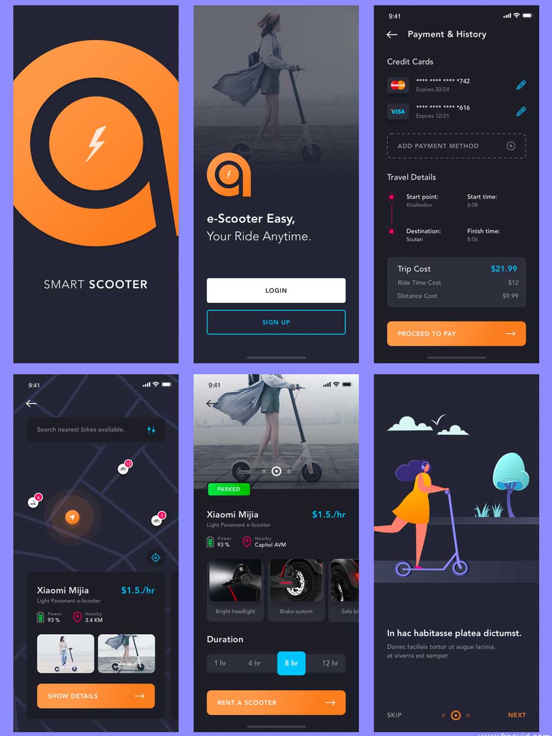 自行车和滑板车UI工具包sketch资源