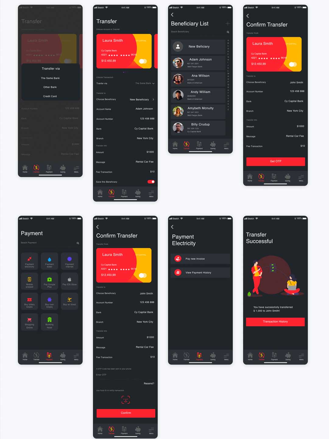 新版金融理财APP UI源文件dark mode,暗色金融银行APP UI素材下载,xd源文件