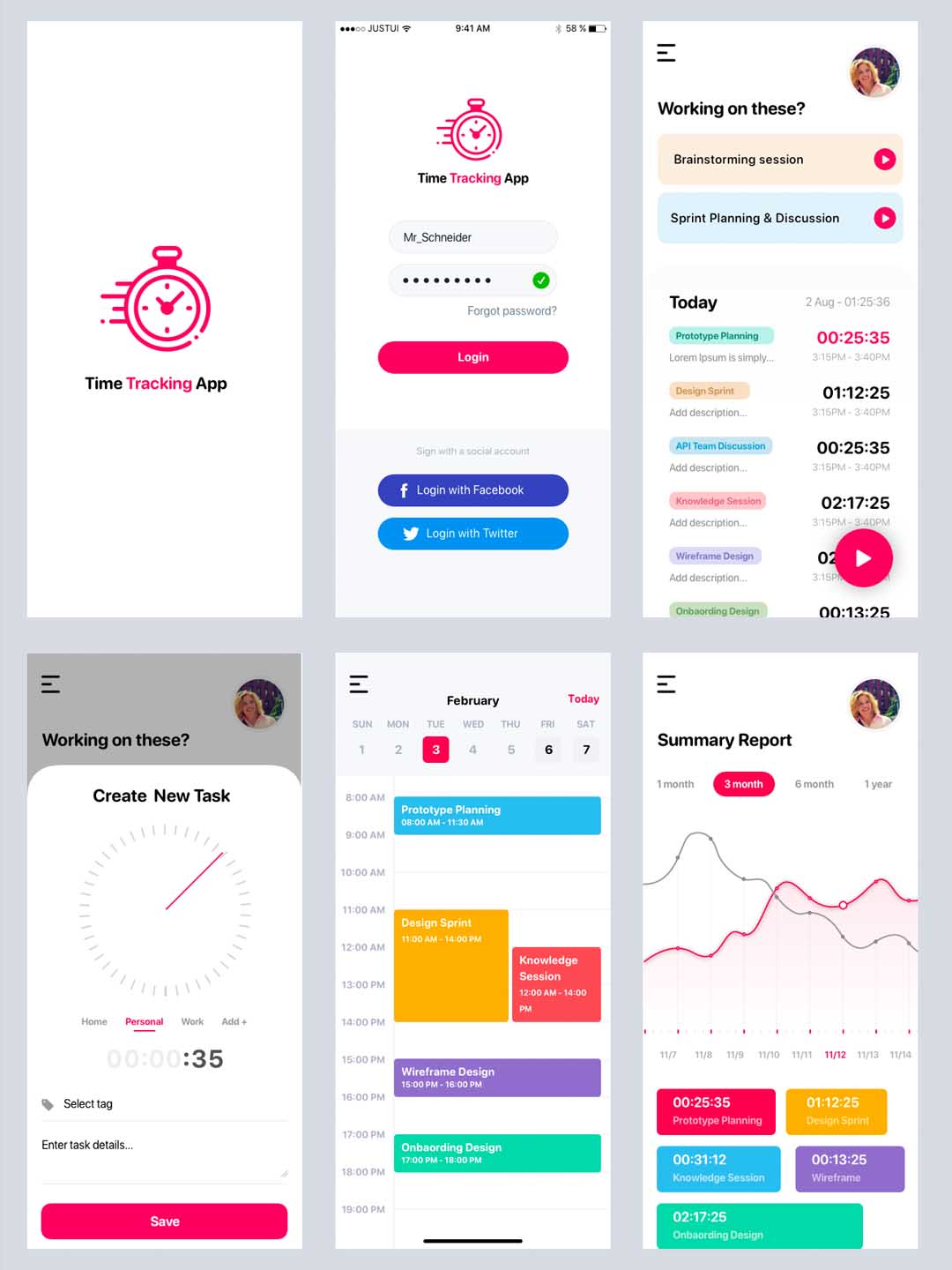 一套简约大气时间管理应用UI界面、时间规划app应用程序sketch源文件下载