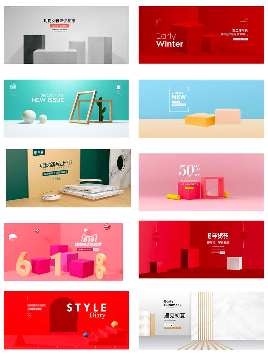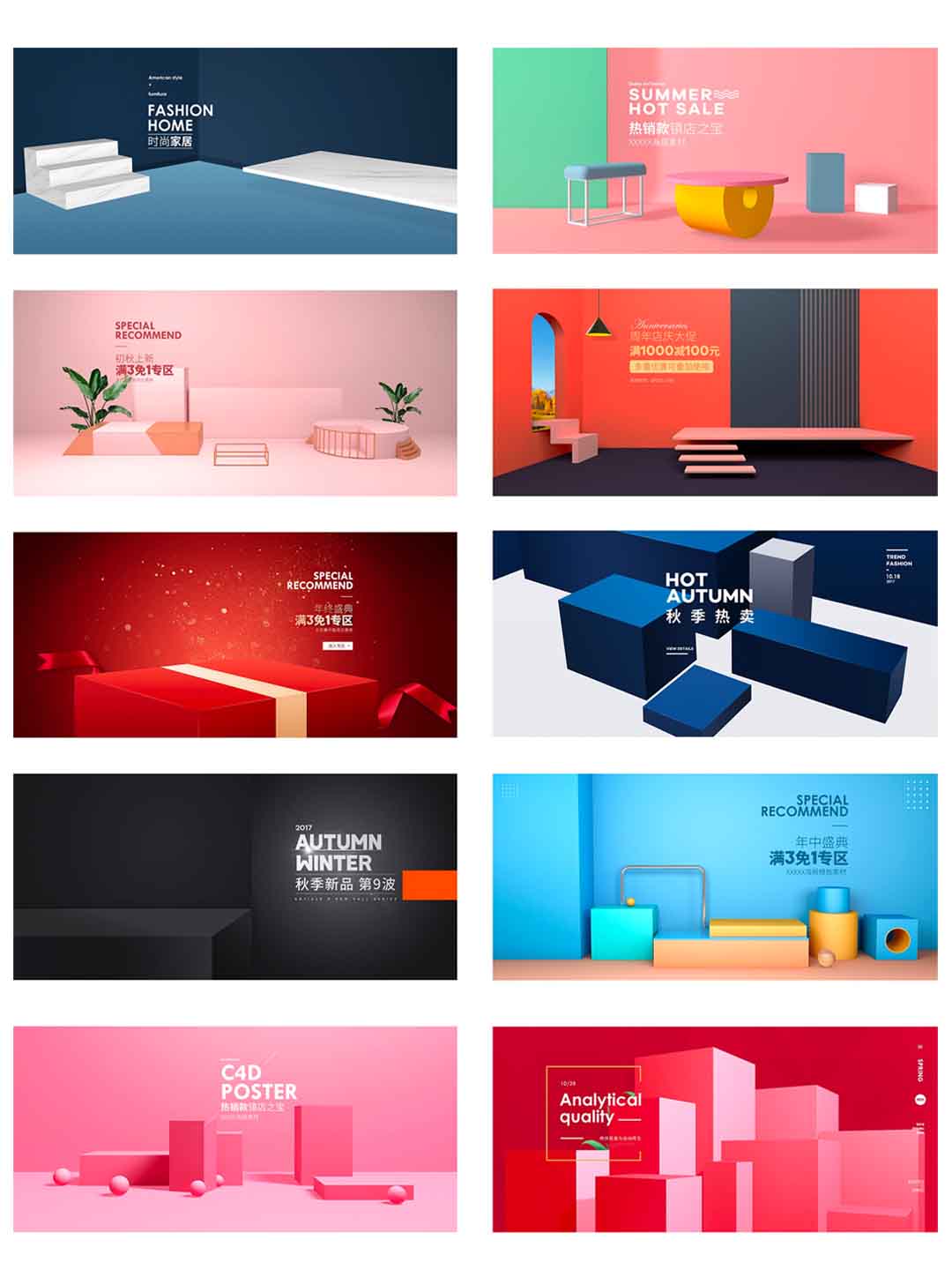 137款电商banner、产品展示C4D模型banner展示psd设计源文件下载
