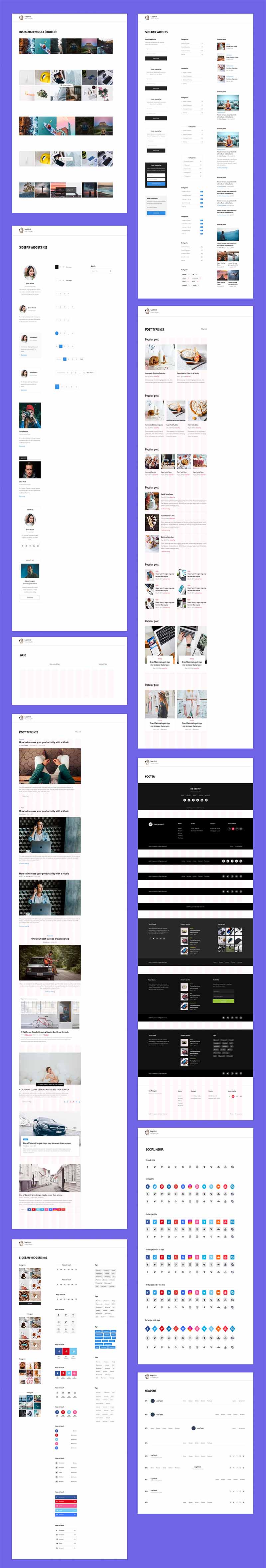博客用户界面工具包模板UI界面下载、图片社交Sketch源文件下载