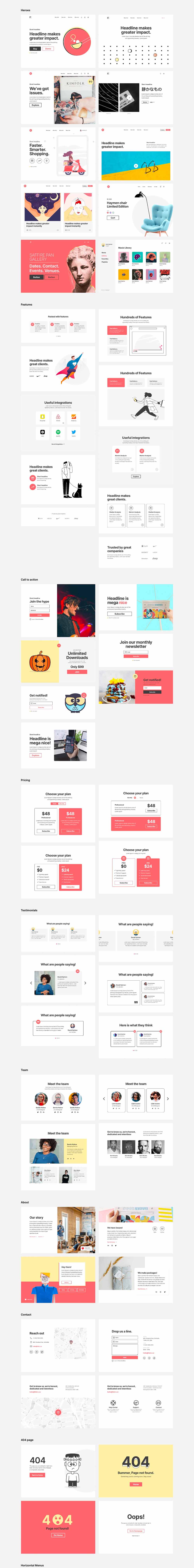 【超赞】250多种网站卡片样式设计,包含首屏,业务分类,联系,产品类别等 Sketch、Studio、Fgma格式
