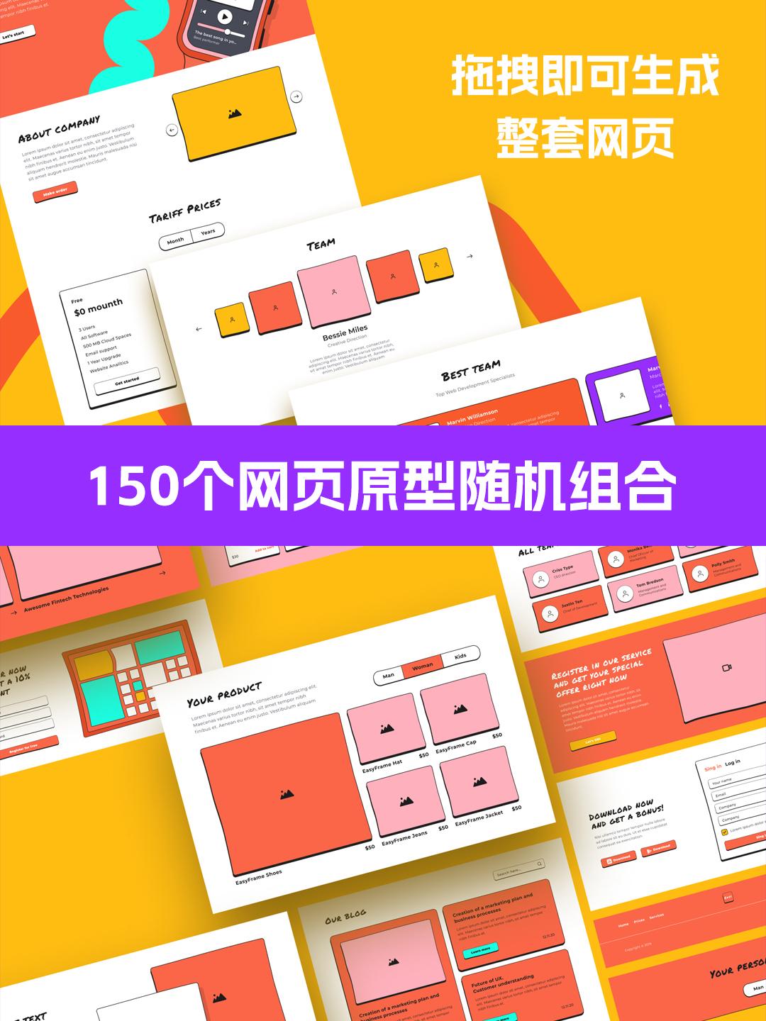 使用方法:可随机自由组合、拖拽网页模板,快速生成整