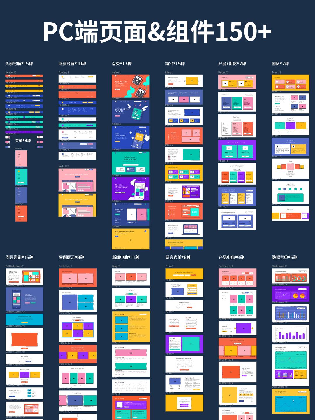 150页高保真原型图 | 网页设计组件XD、Sketch、Figma源文件