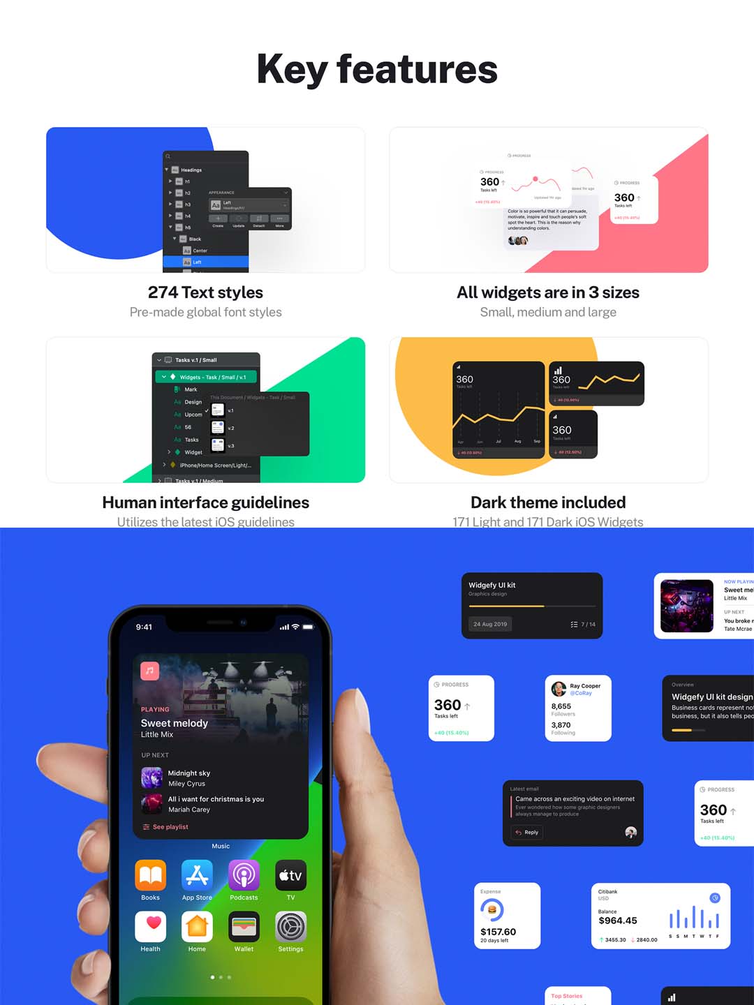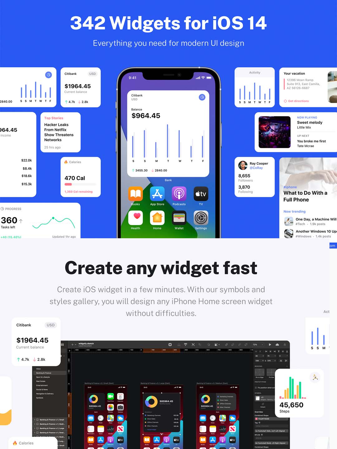 300多种不同风格的iOS 14小组件UI工具包, iOS UI小组件psd,sketch,xd源文件