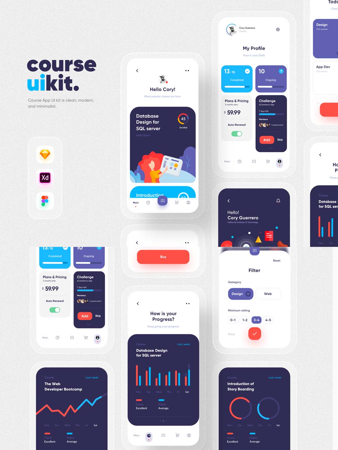 一套在线教育APP UI资源下载,在线课程UI 源文件,教育产品UI素材下载 sketch,fig,xd源文件