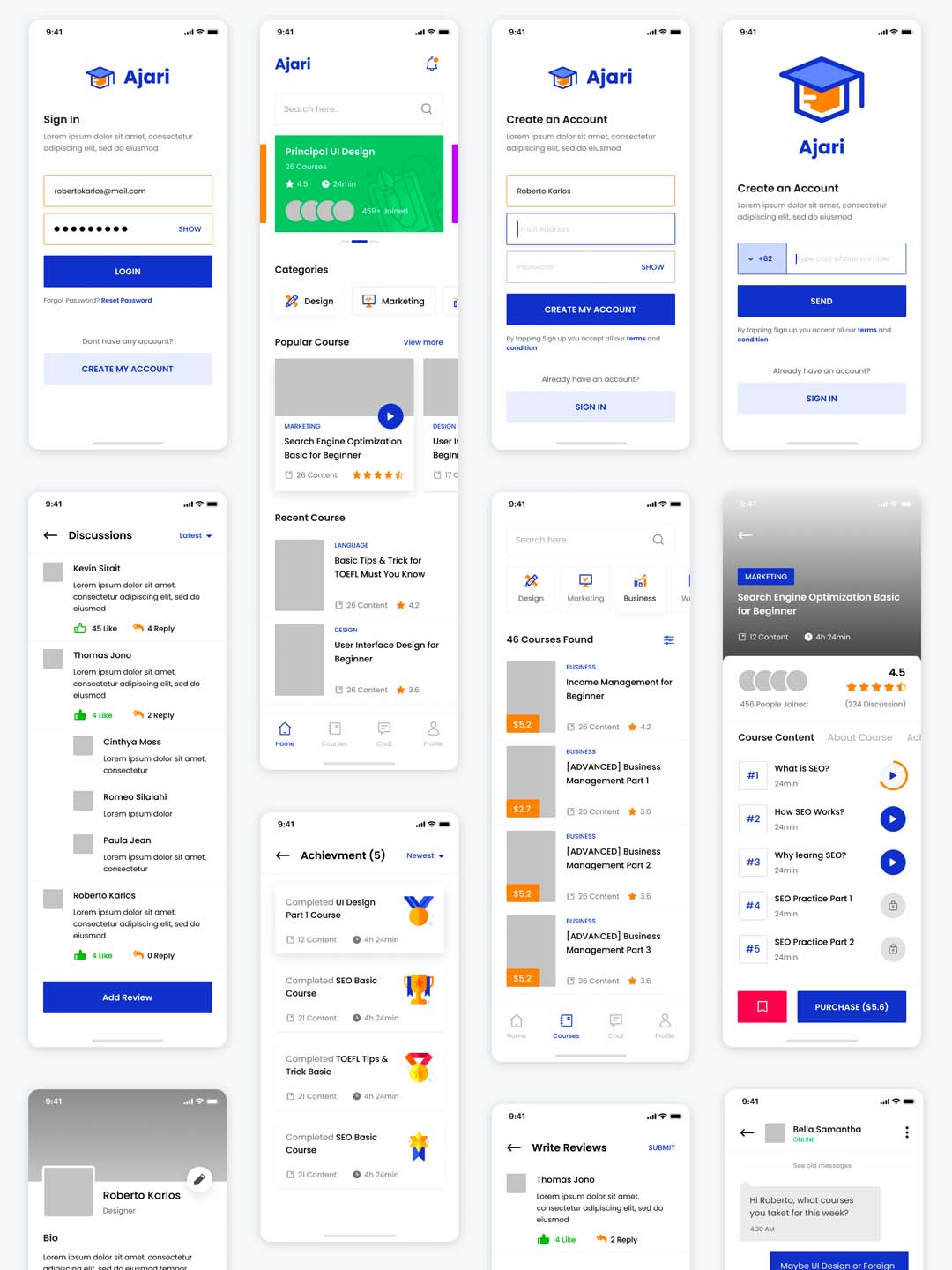 15页在线教育、在线学习类产品UI原型fig, psd源文件下载