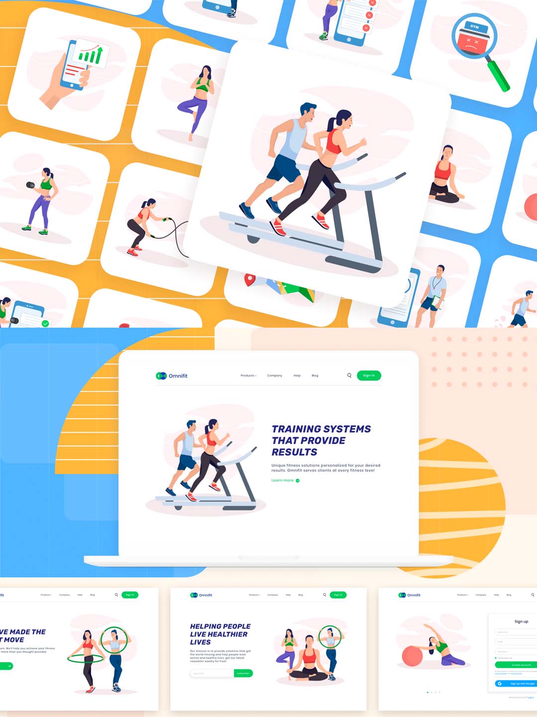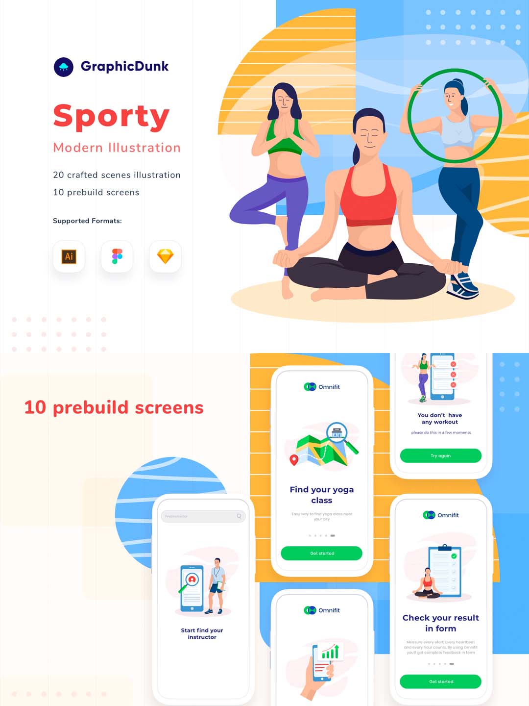 一套运动健身运营插画套装ai、sketch、figma源文件下载,20张现代体育运动矢量插画集下载