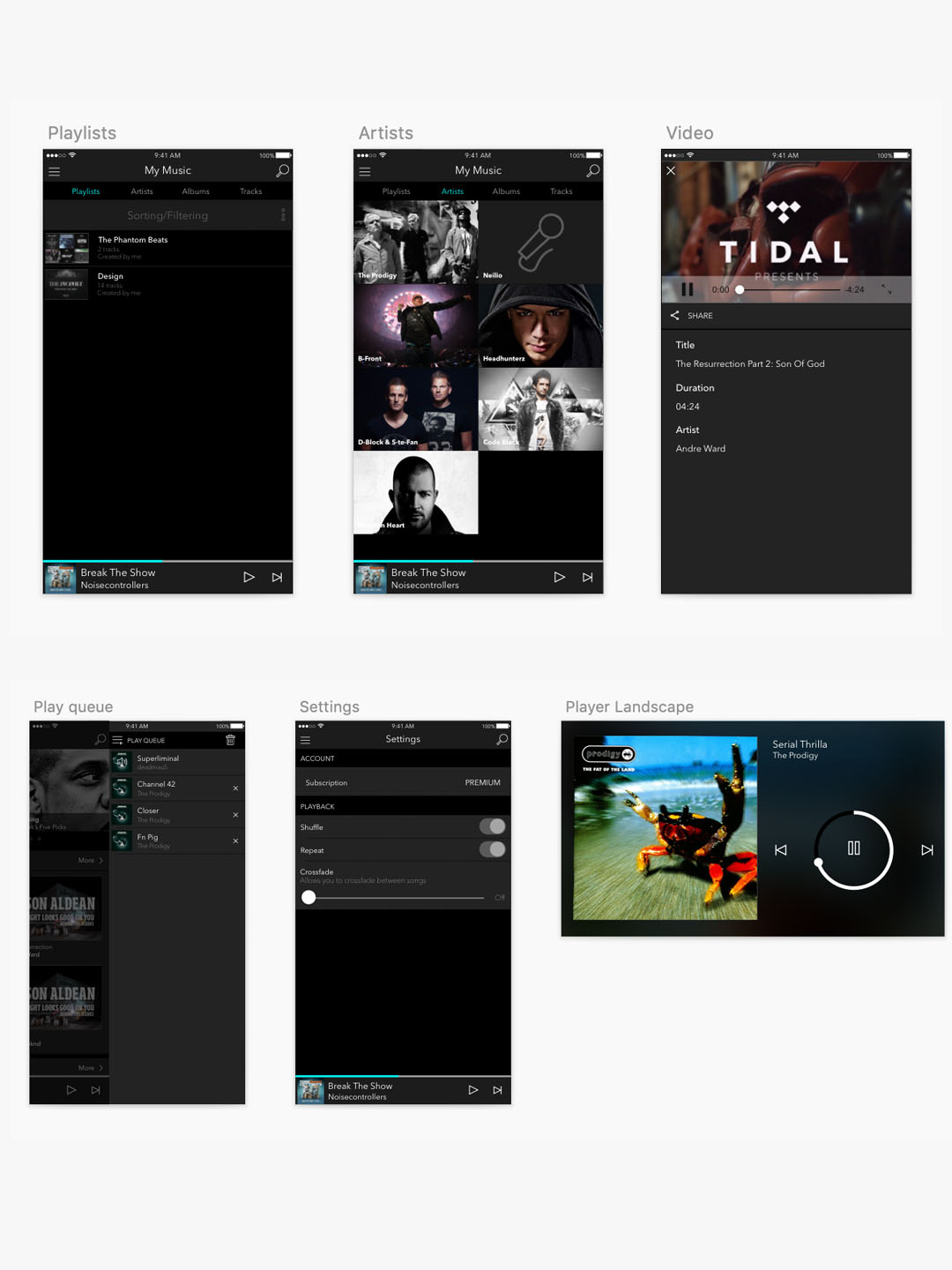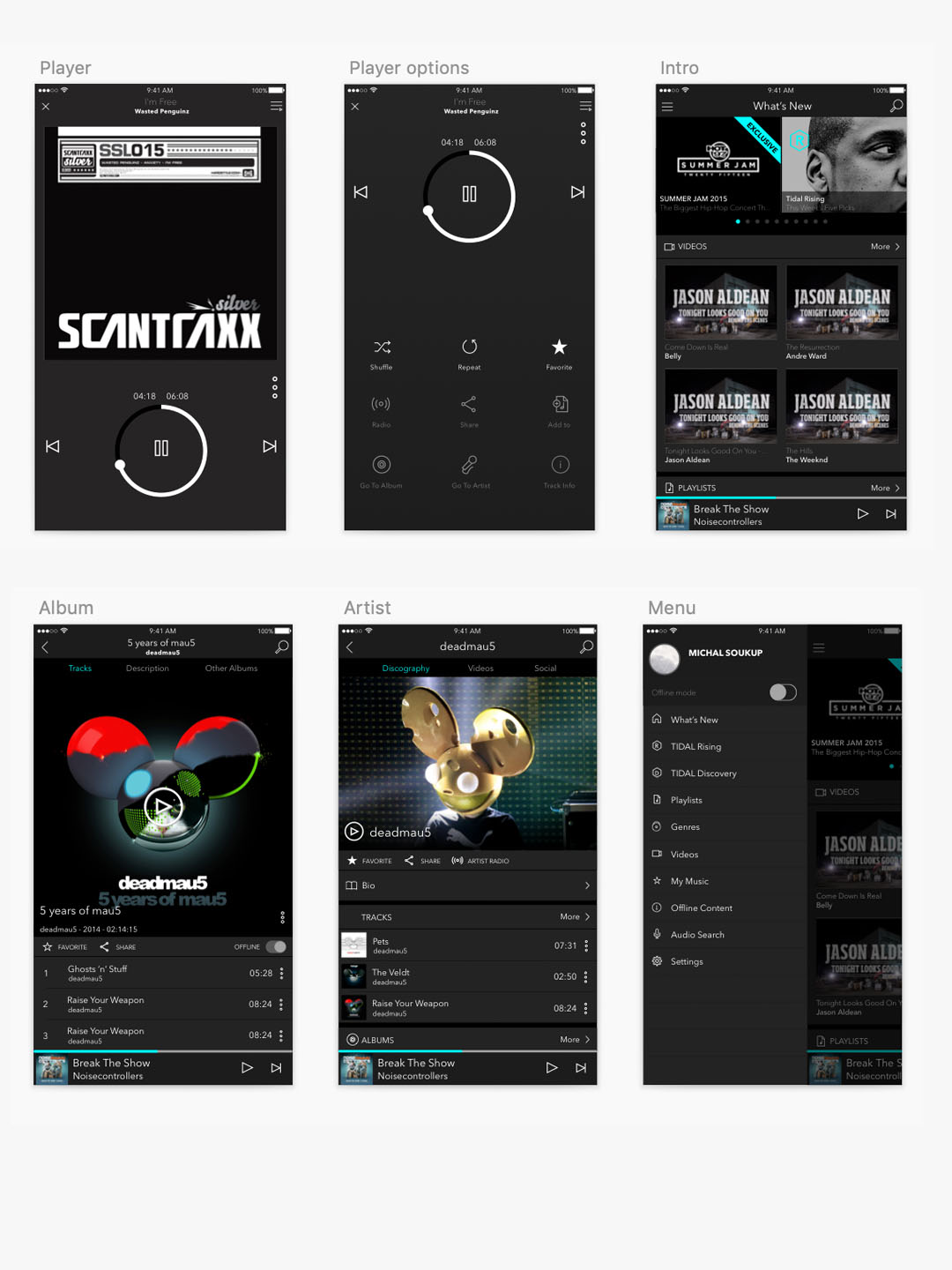 音乐播放器app UI界面设计sketch源文件,黑色炫酷设计