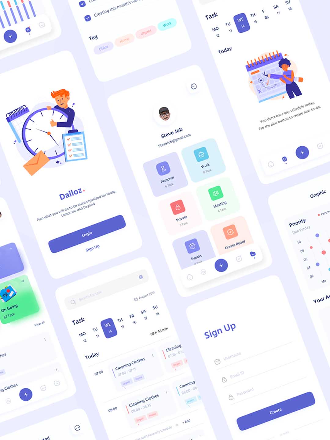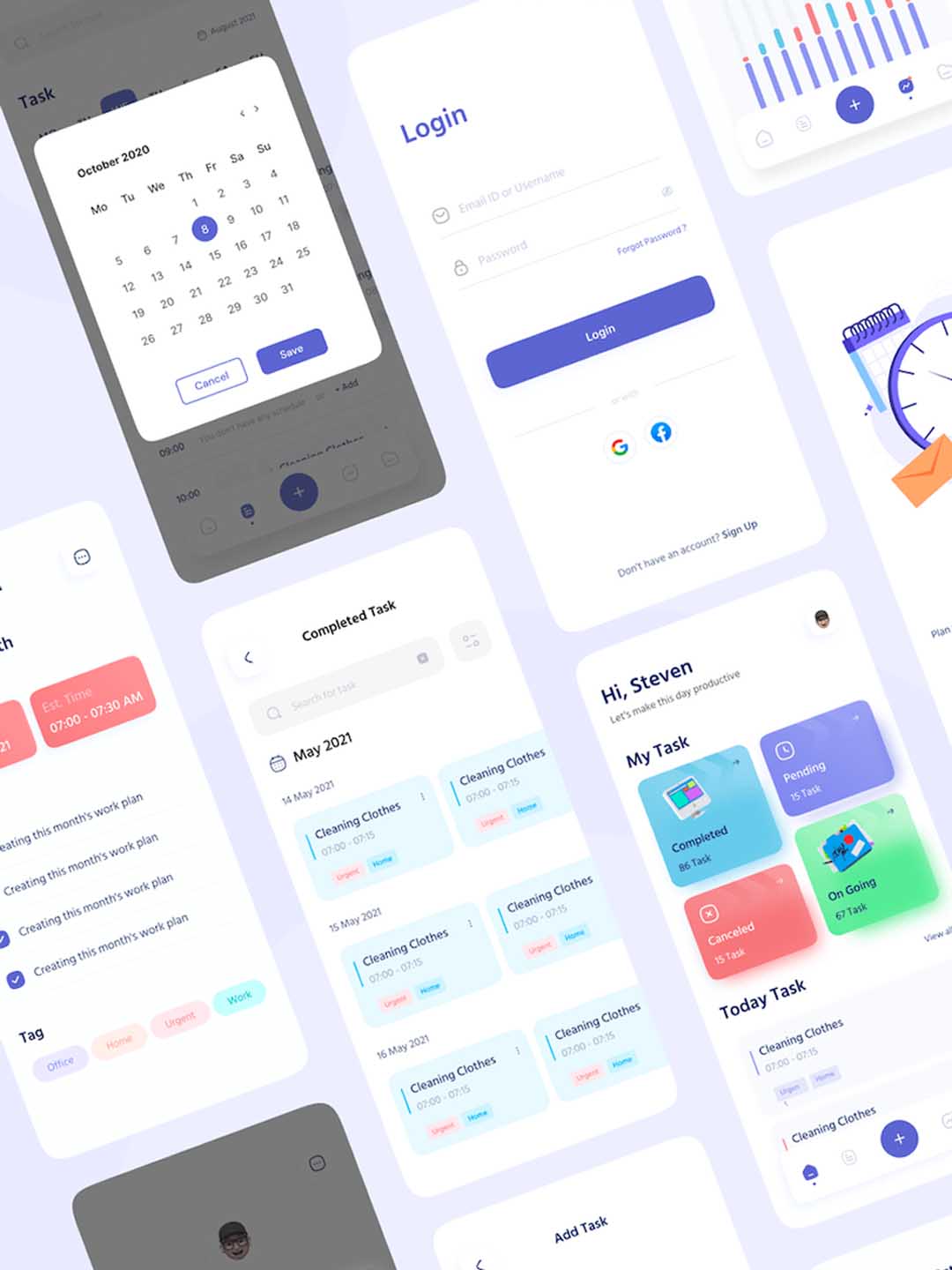 40页用于待办事项和日常活动应用程序的 UI sketch套件。