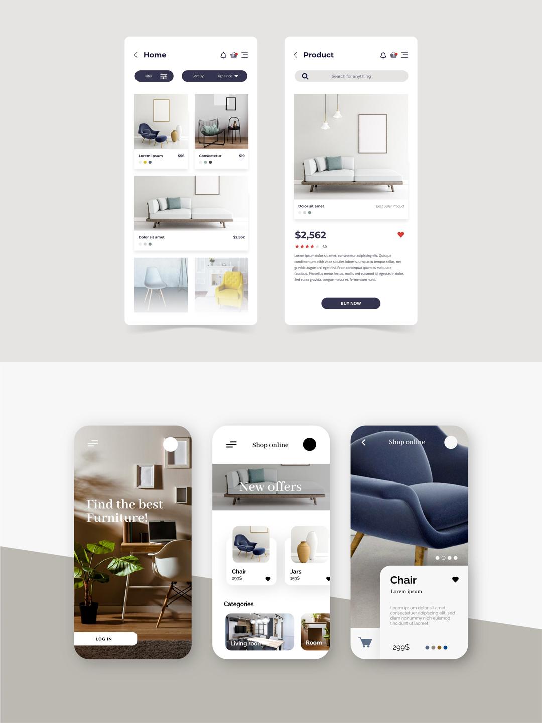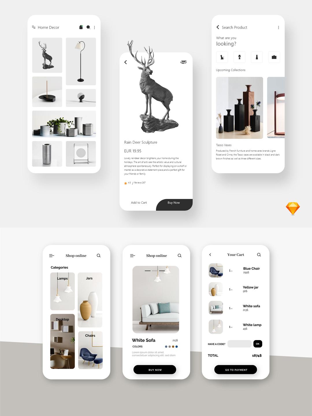 15套家居App设计源文件 | 家具商城UI界面设计AI & XD & Sketch
