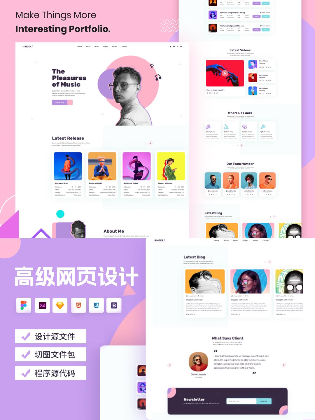 高级网页设计Figma、Sketch、XD源文件 | 网页设计CSS、Js源代码