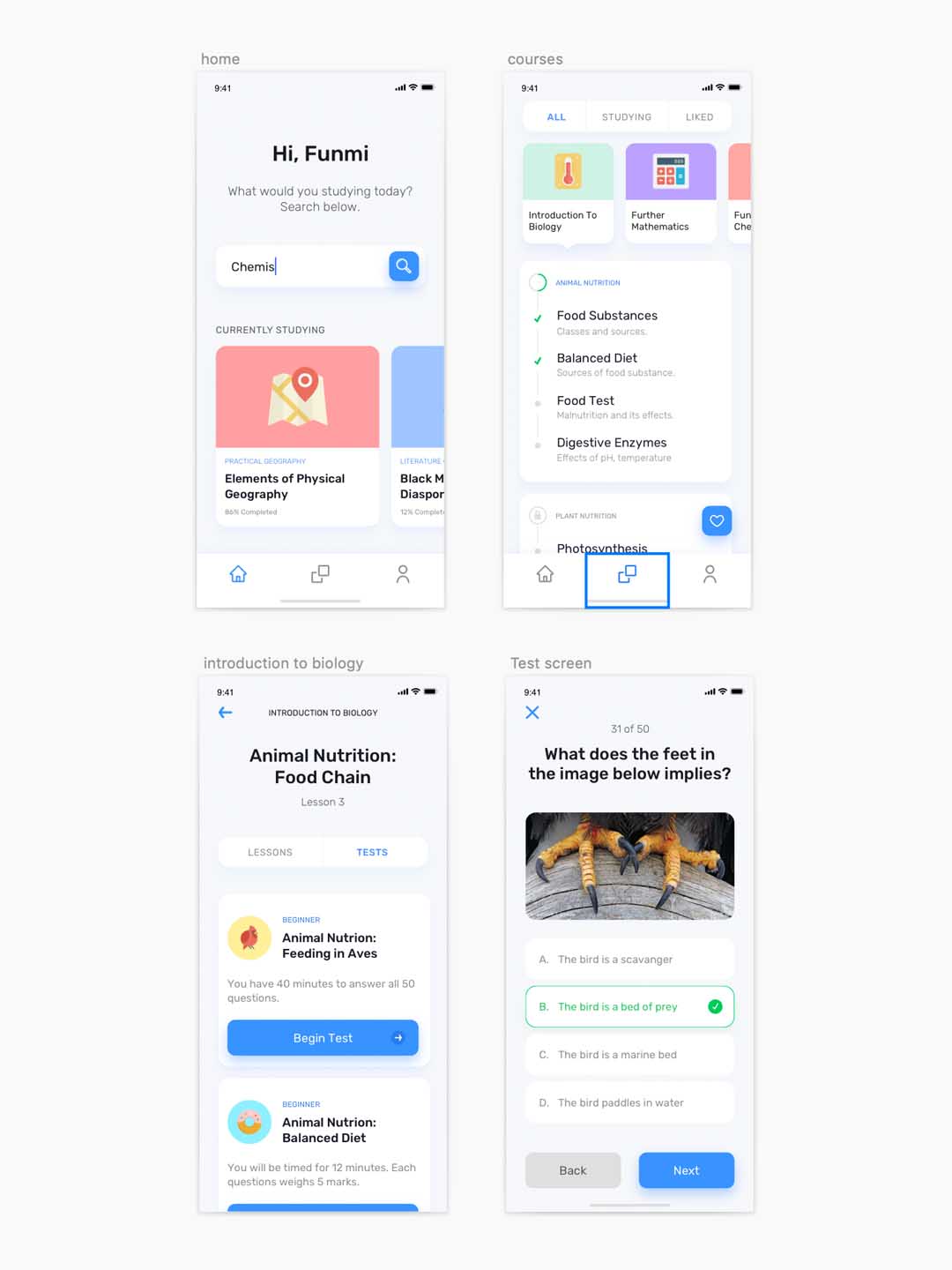 5 个屏幕的教育app应用程序,用于探索、学习和参加课程。sketch格式