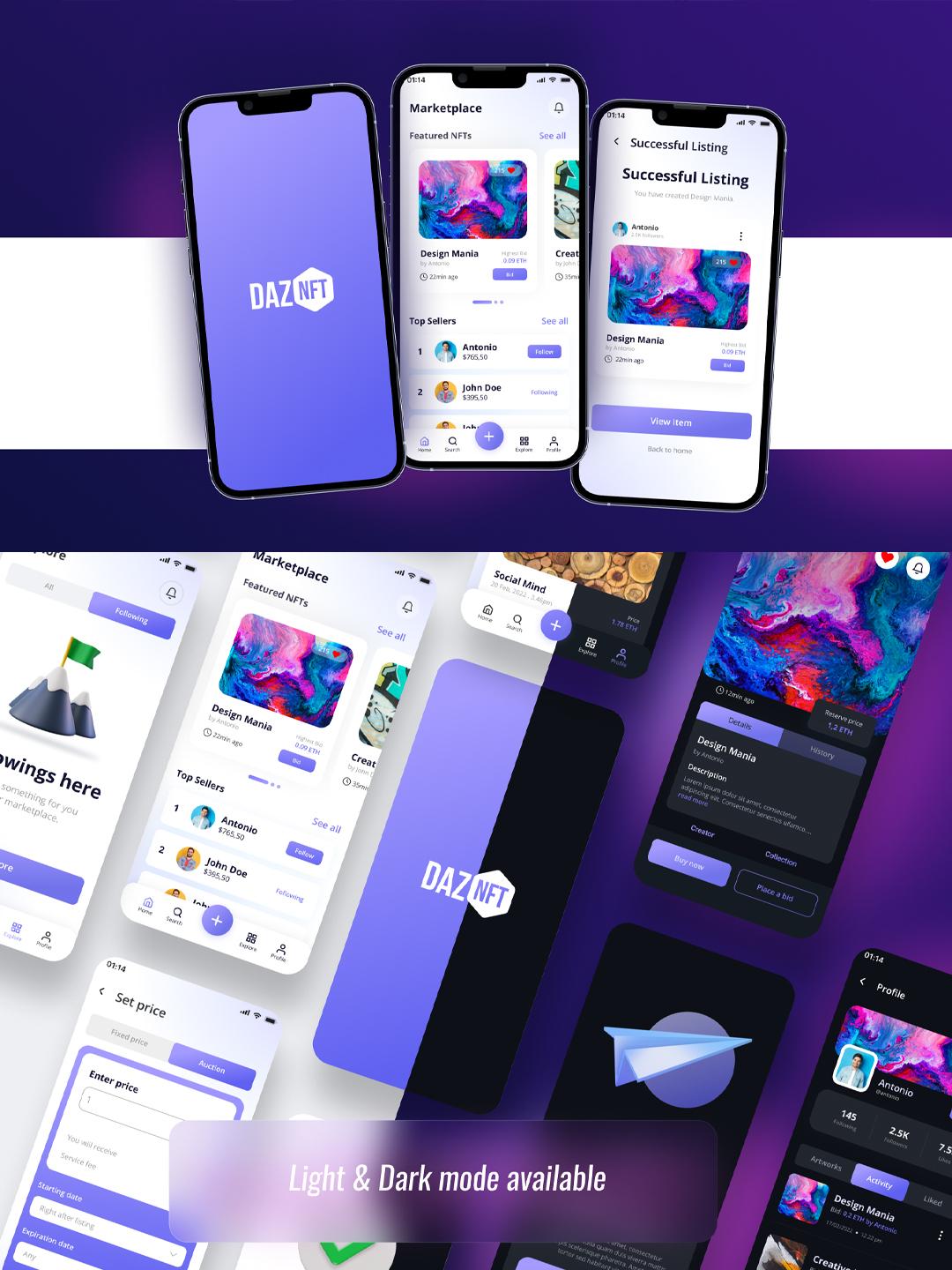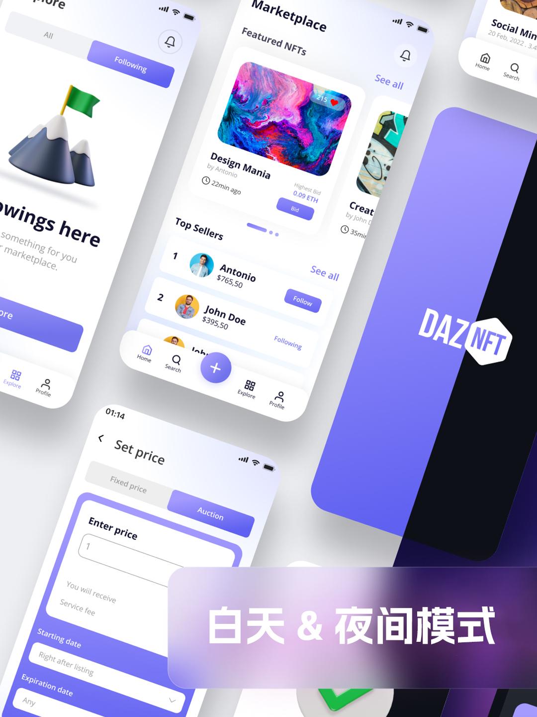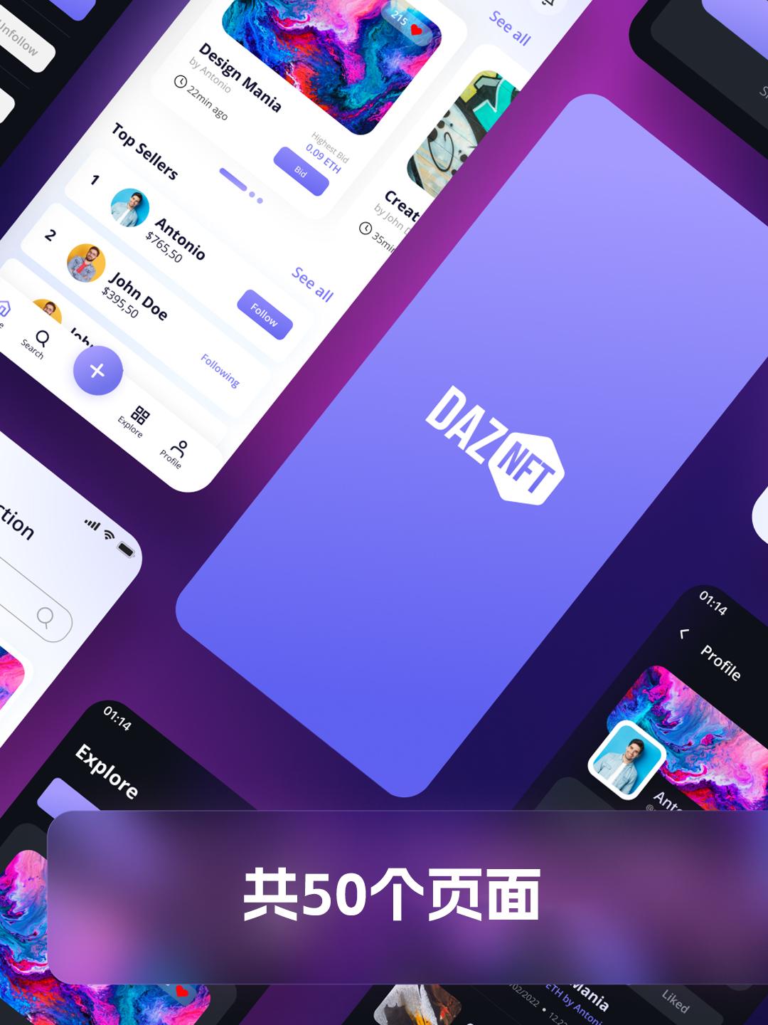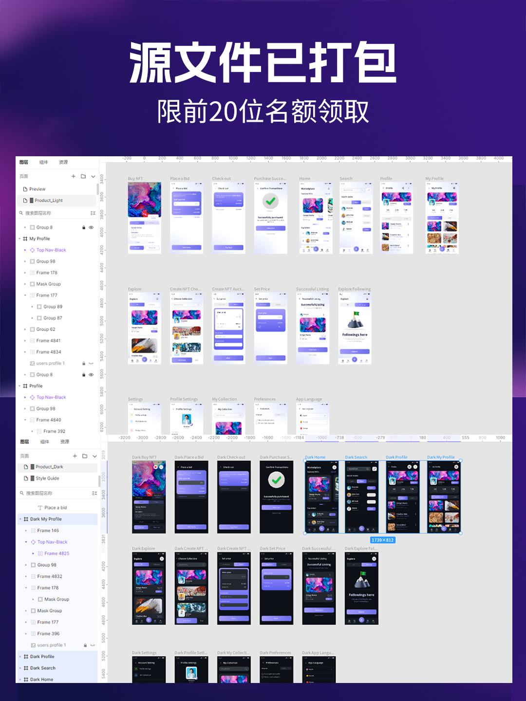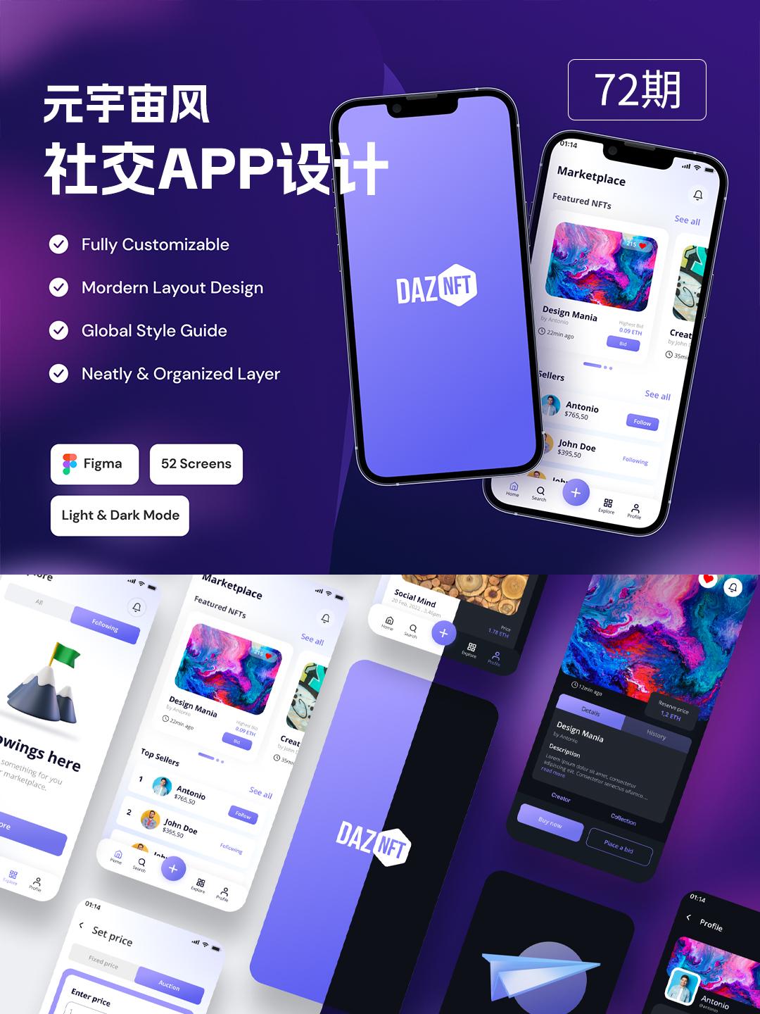 明暗52页元宇宙风社交类APP设计模板 | UI设计源文件figma源文件