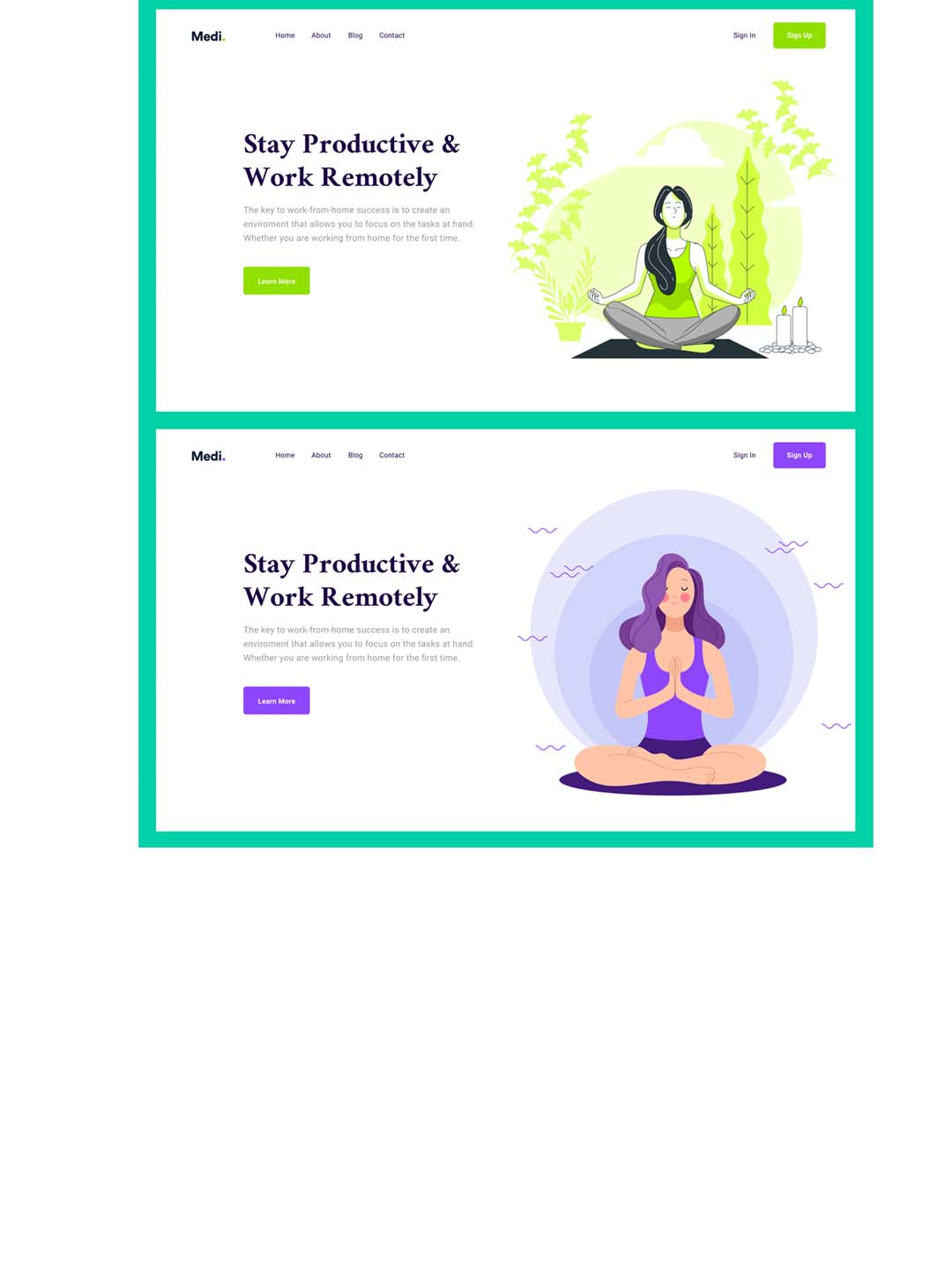 Medi - Figma 的冥想网页标题 冥想网站的优雅干净的网页