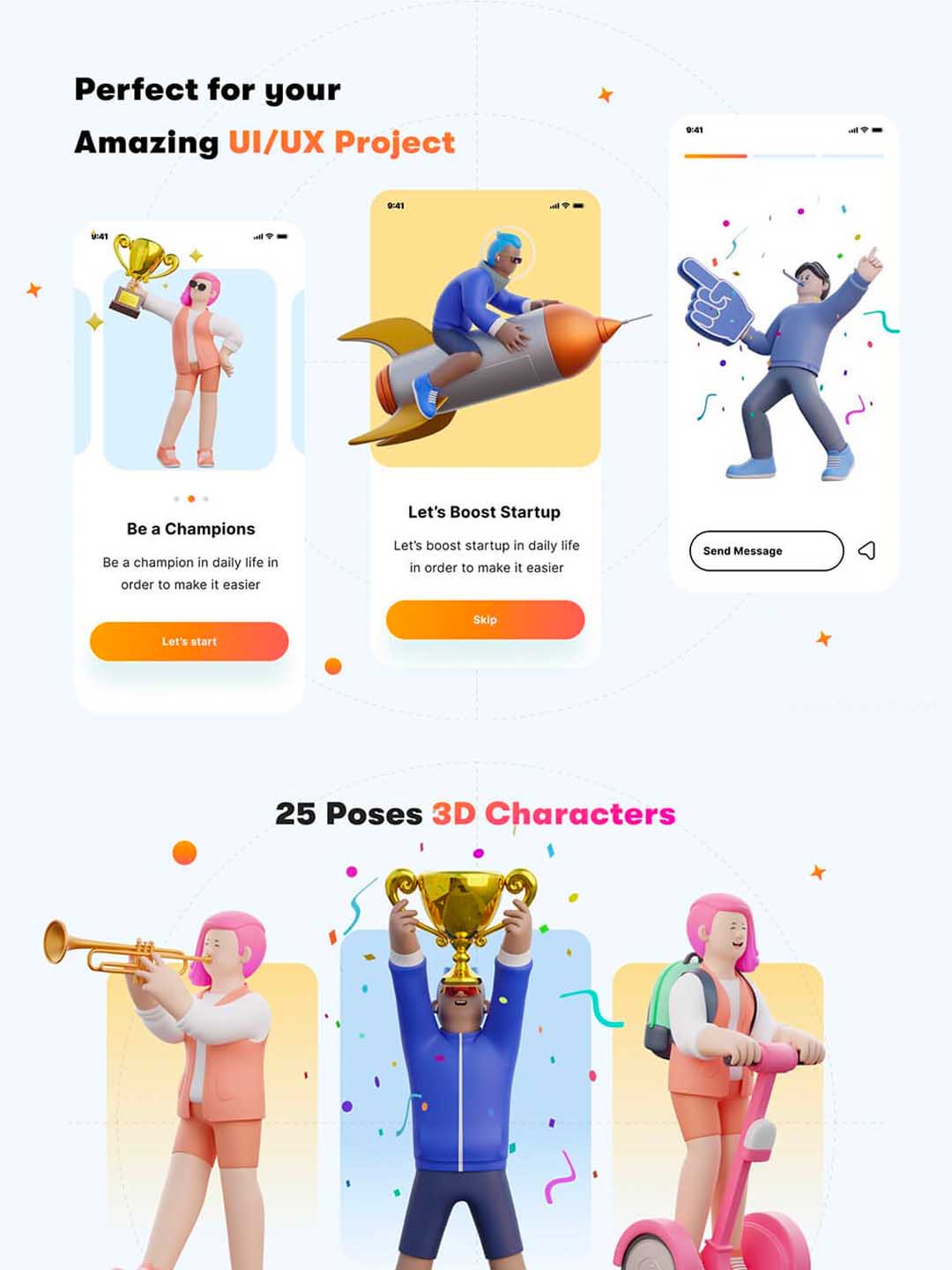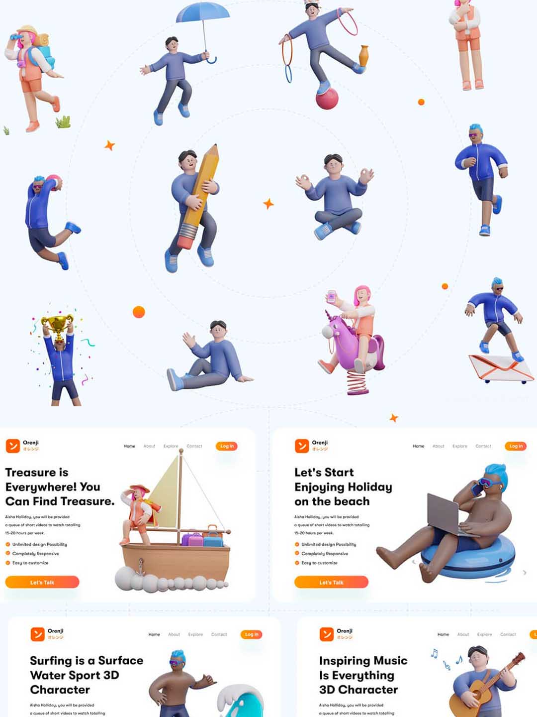 年轻时尚的3D人物角色插画源文件,UI 3D插画网页3d人物角色blend源文件下载