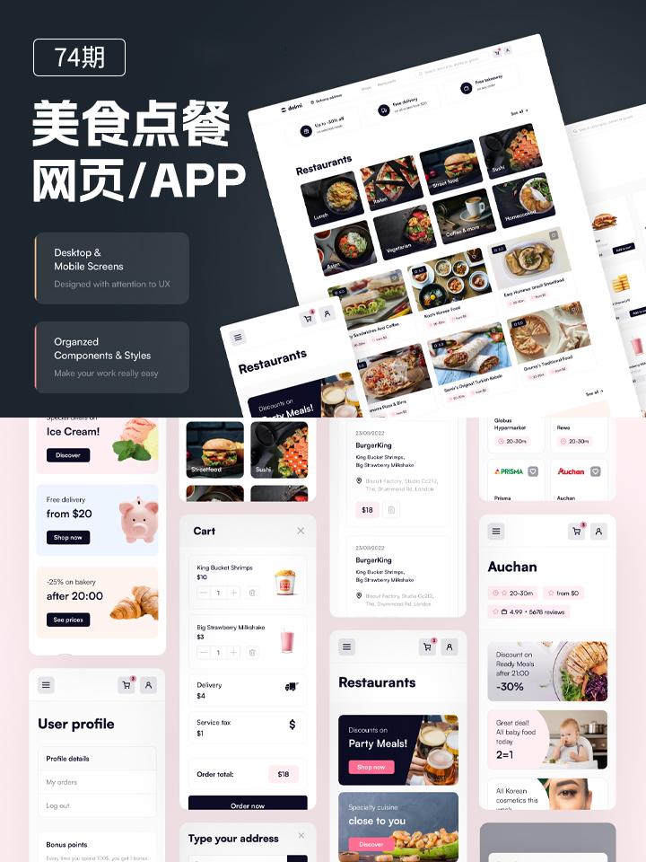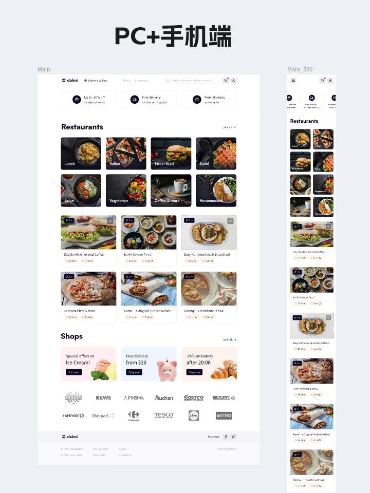 美食点餐APP界面设计稿,响应式网站UI设计