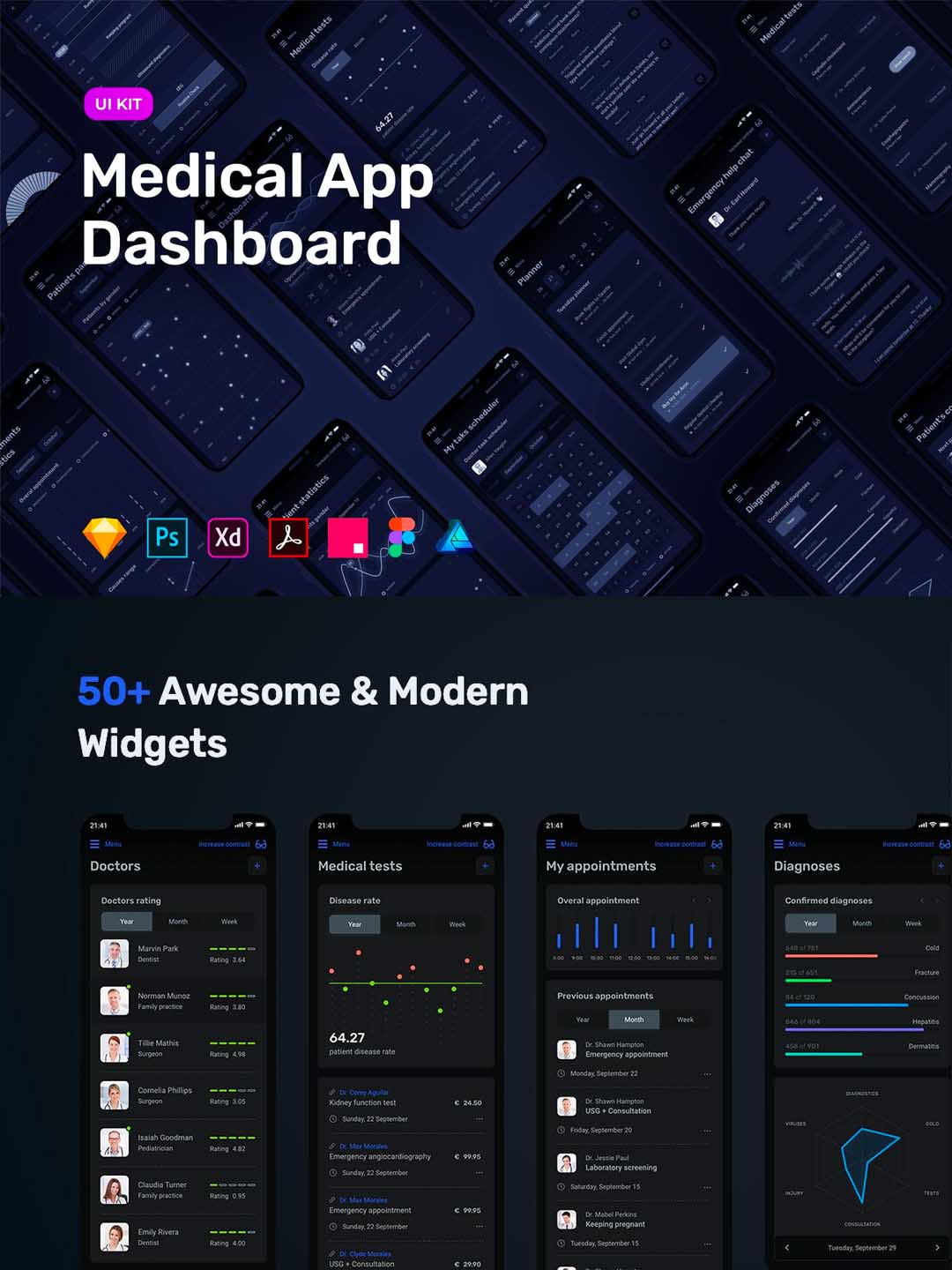 数据可视化app UI资源下载,含xd、sketch、psd、fig多端源文件