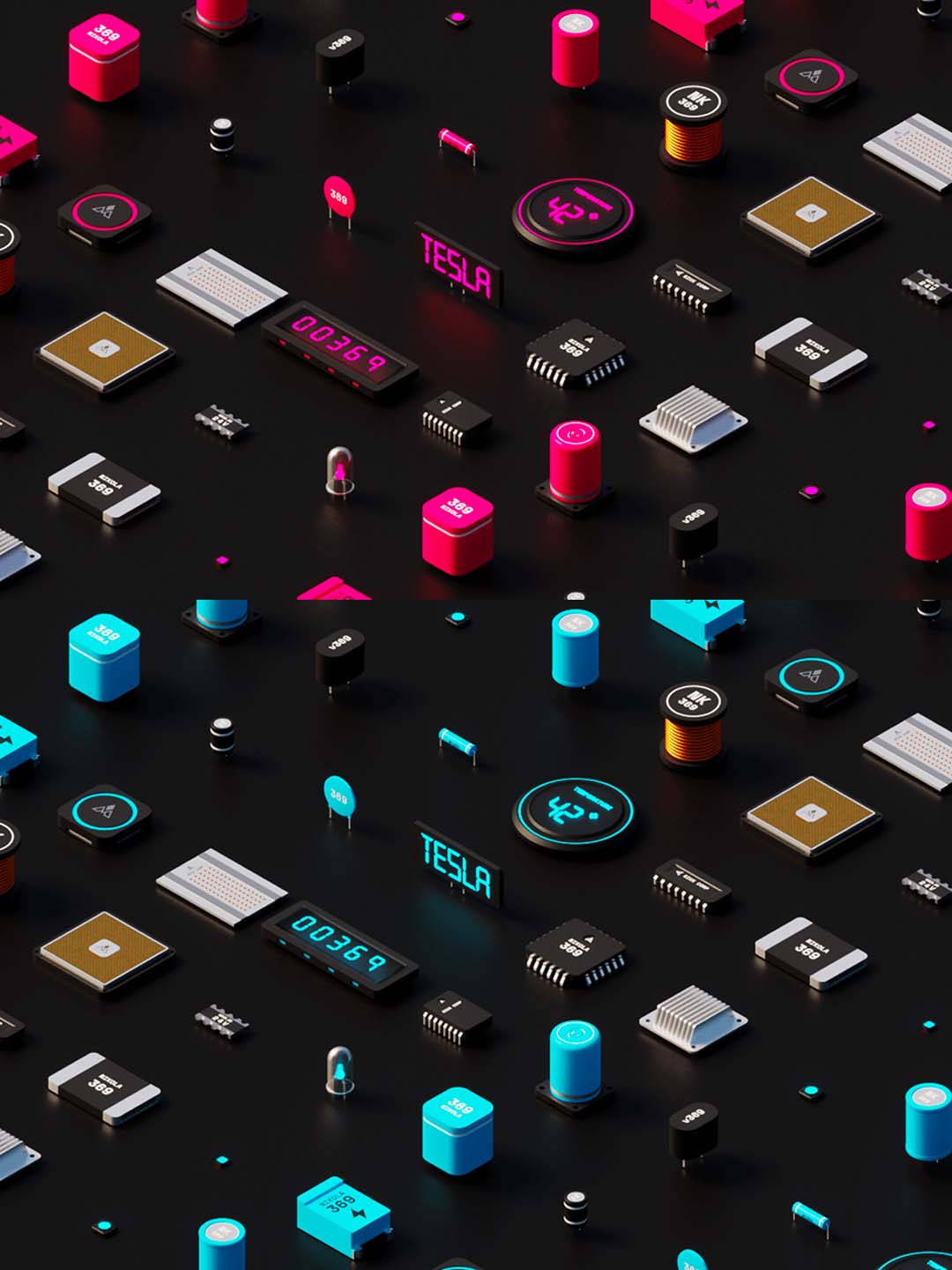 电子元器件、微芯片、晶体管、电阻等3D资源库blend,obj,fbx源文件