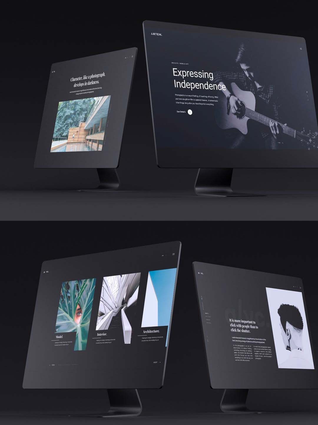 高端网页UI展示样机模板,网页展示mockup样机psd源文件,mac电脑样机模板,电脑mockup样机psd