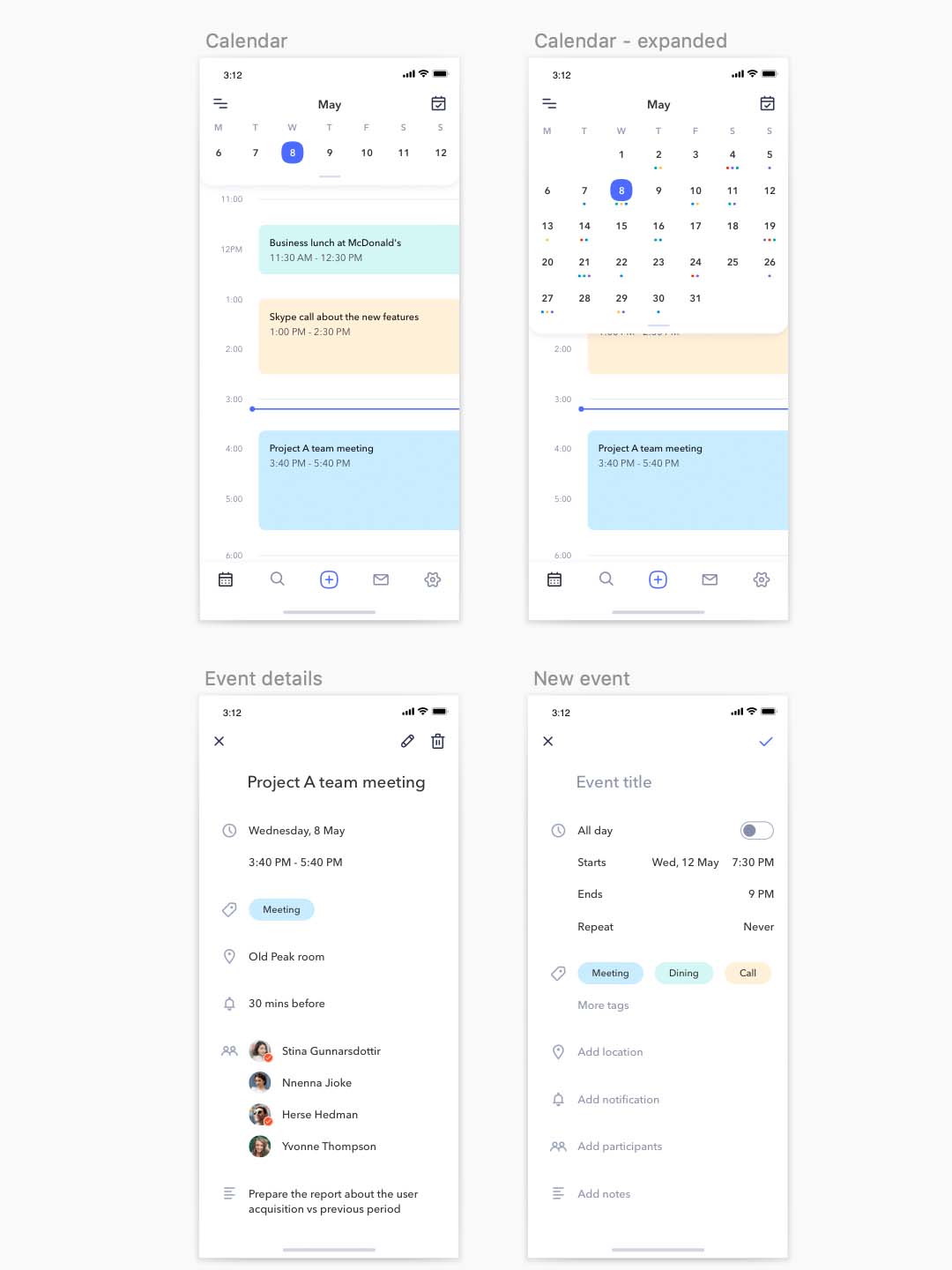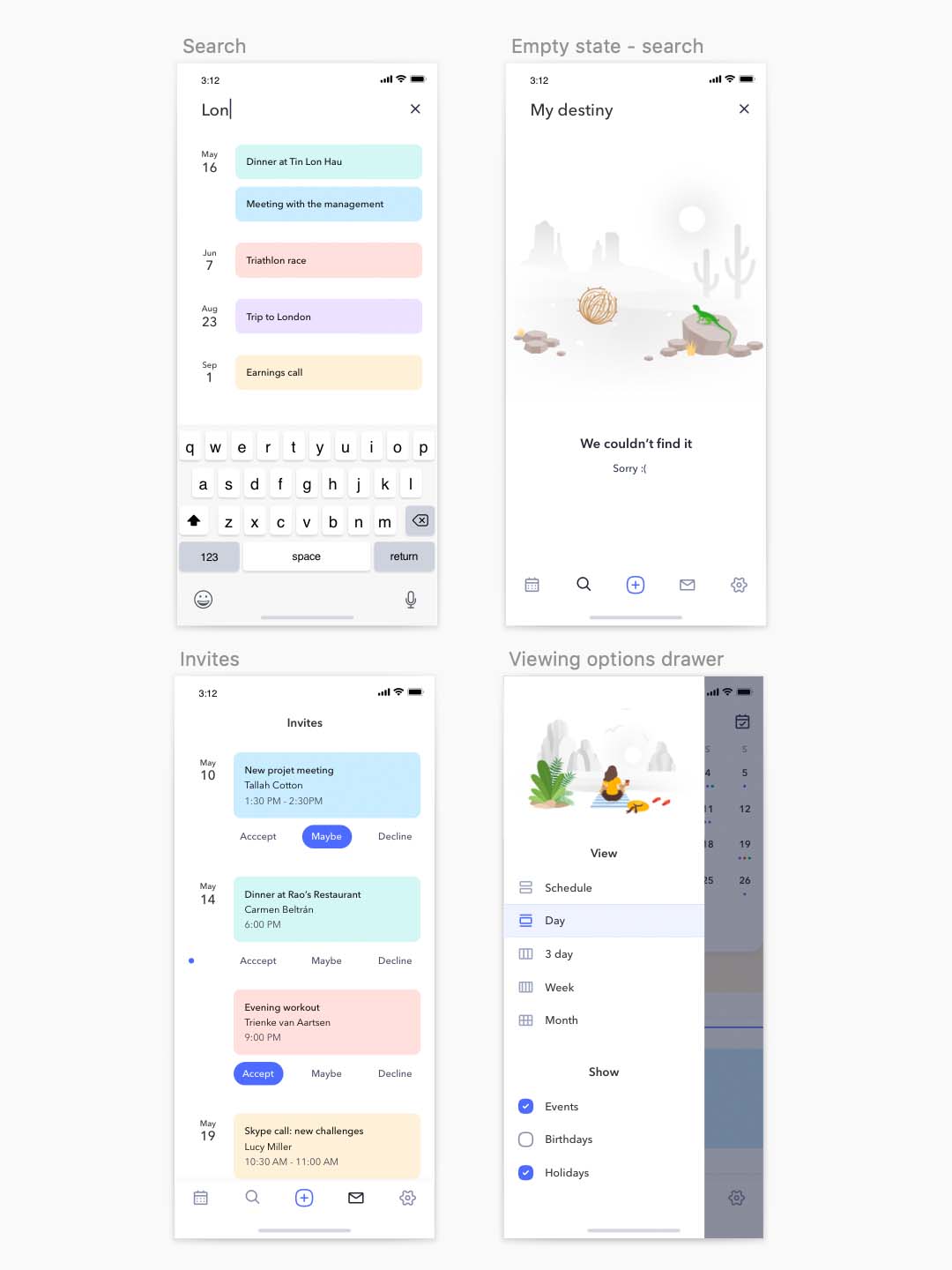 iOS 日历App应用程序 UI 套件sketch资源