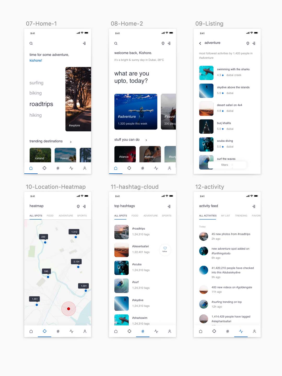 适用于 iOS 的简单移动 UI 套件,一个面向旅行者和探险者的社交网络App sketch源文件