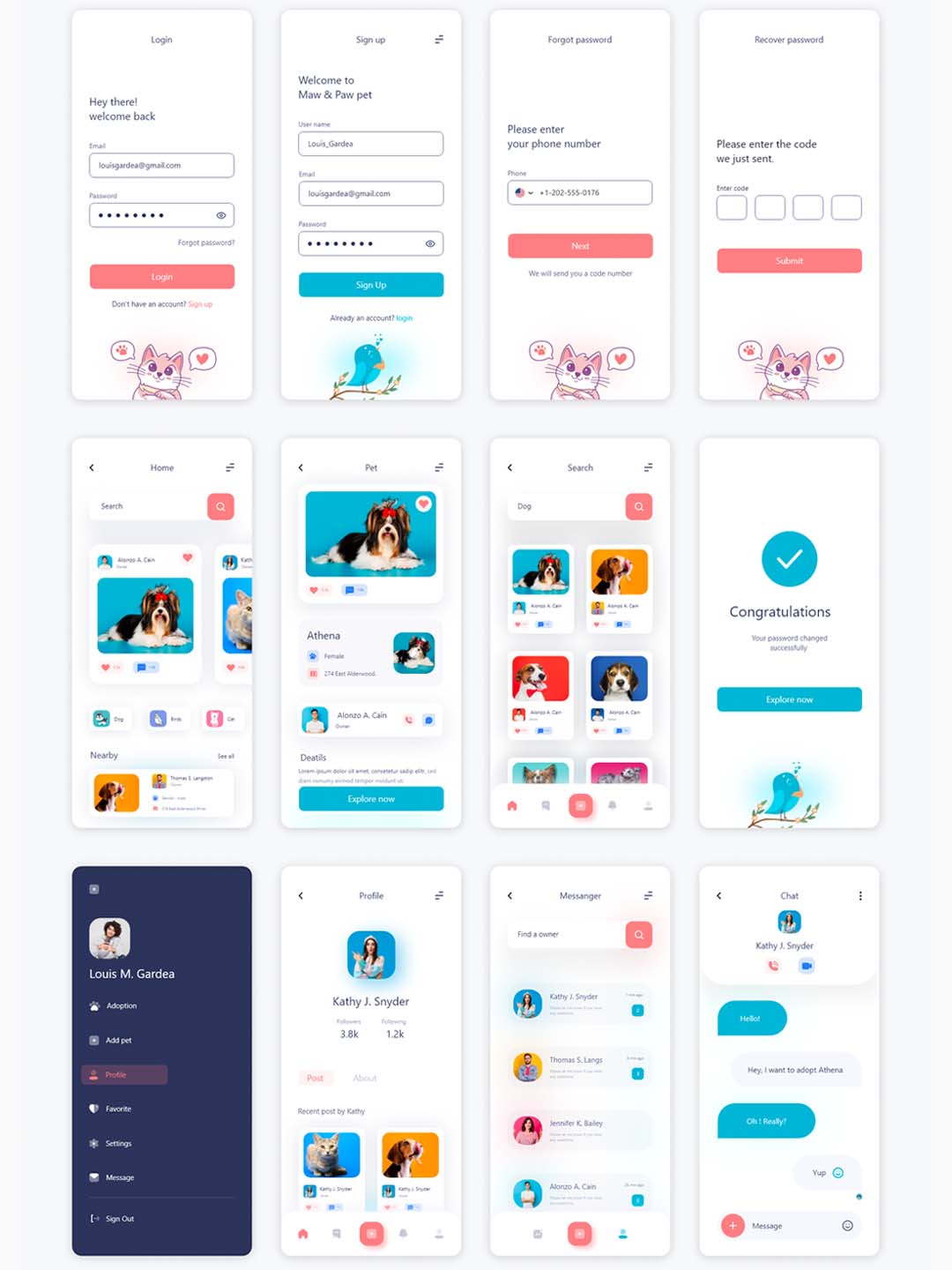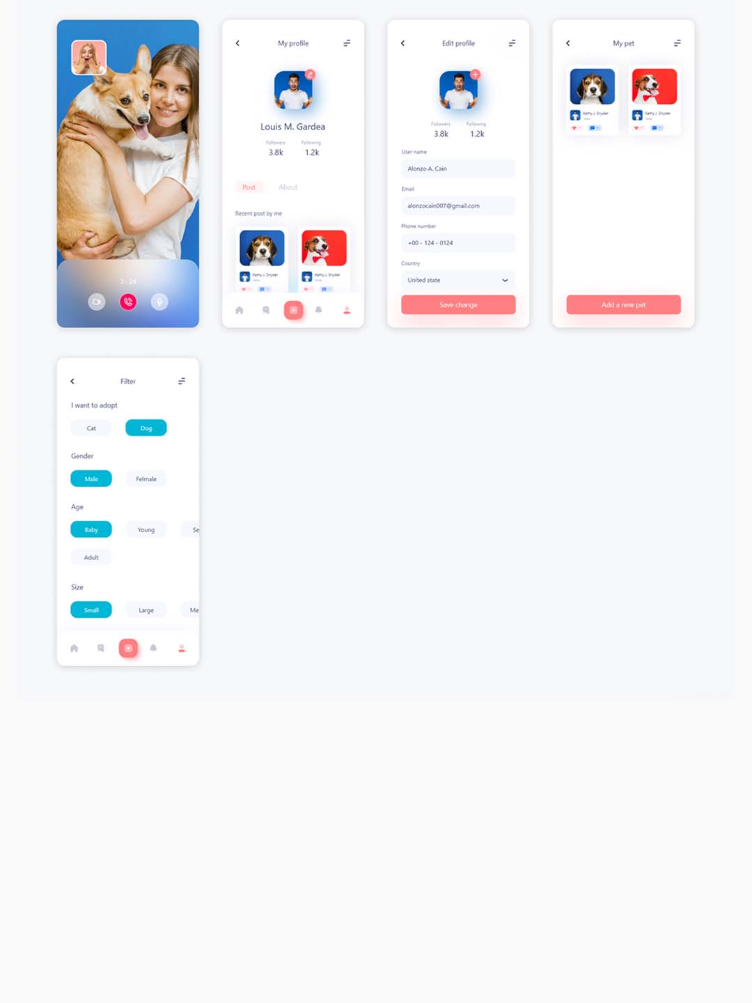 宠物APP UI模板,宠物领养app UI资源下载,宠物app UI源文件,宠物UI素材xd源文件