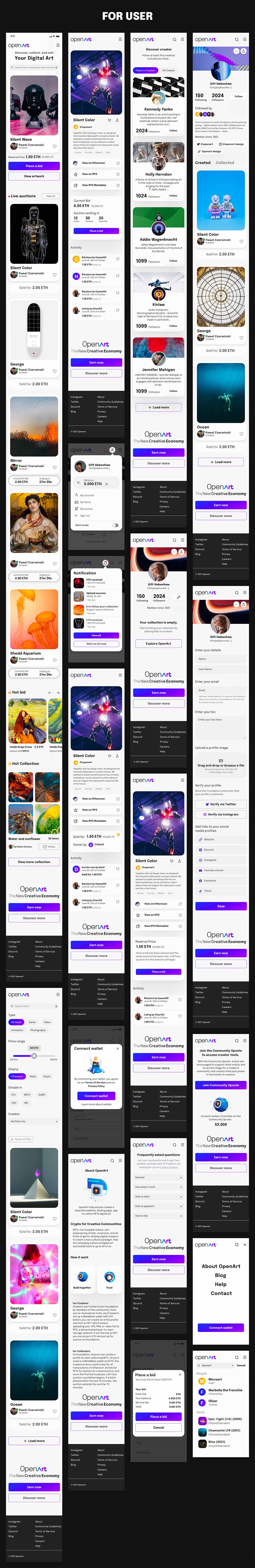 NFT 市场应用程序 UI 套件,具有 40 多个高质量屏幕,易于在 Figma 中使用
