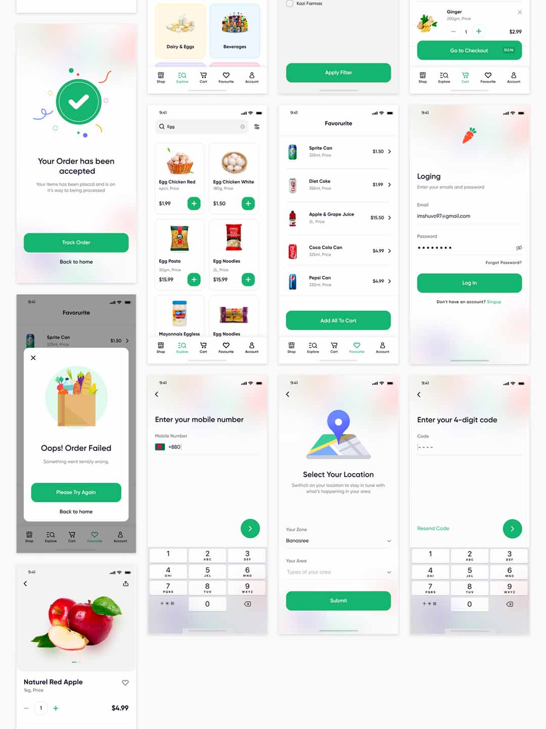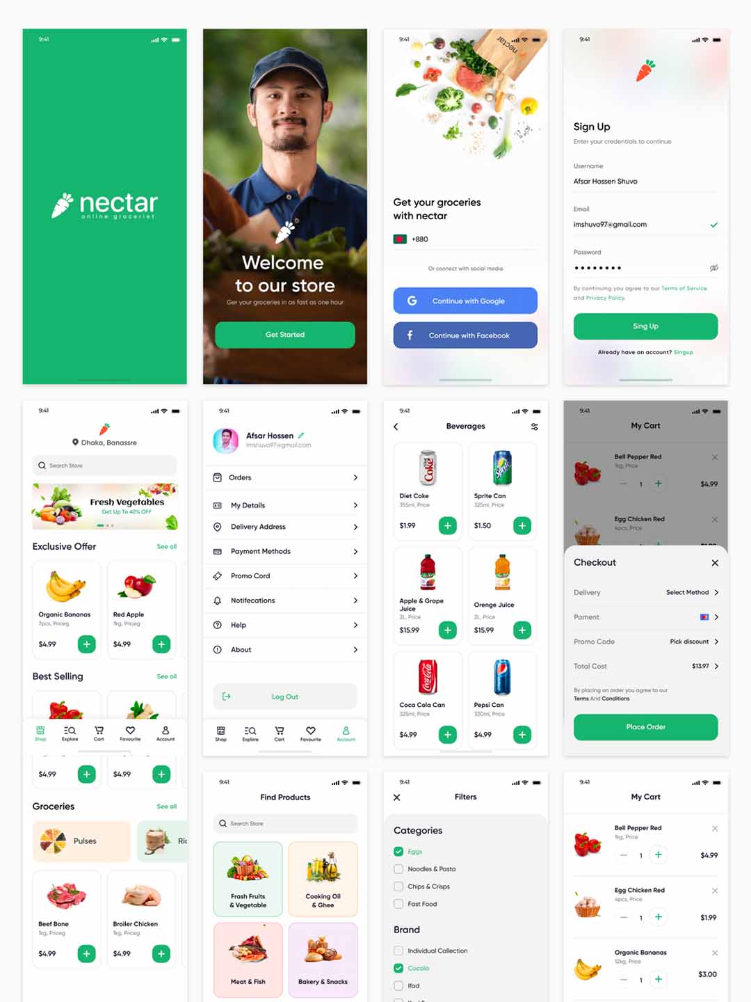 适用于 Figma 的在线购物超市,杂货店,买菜应用程序 UI 套件
