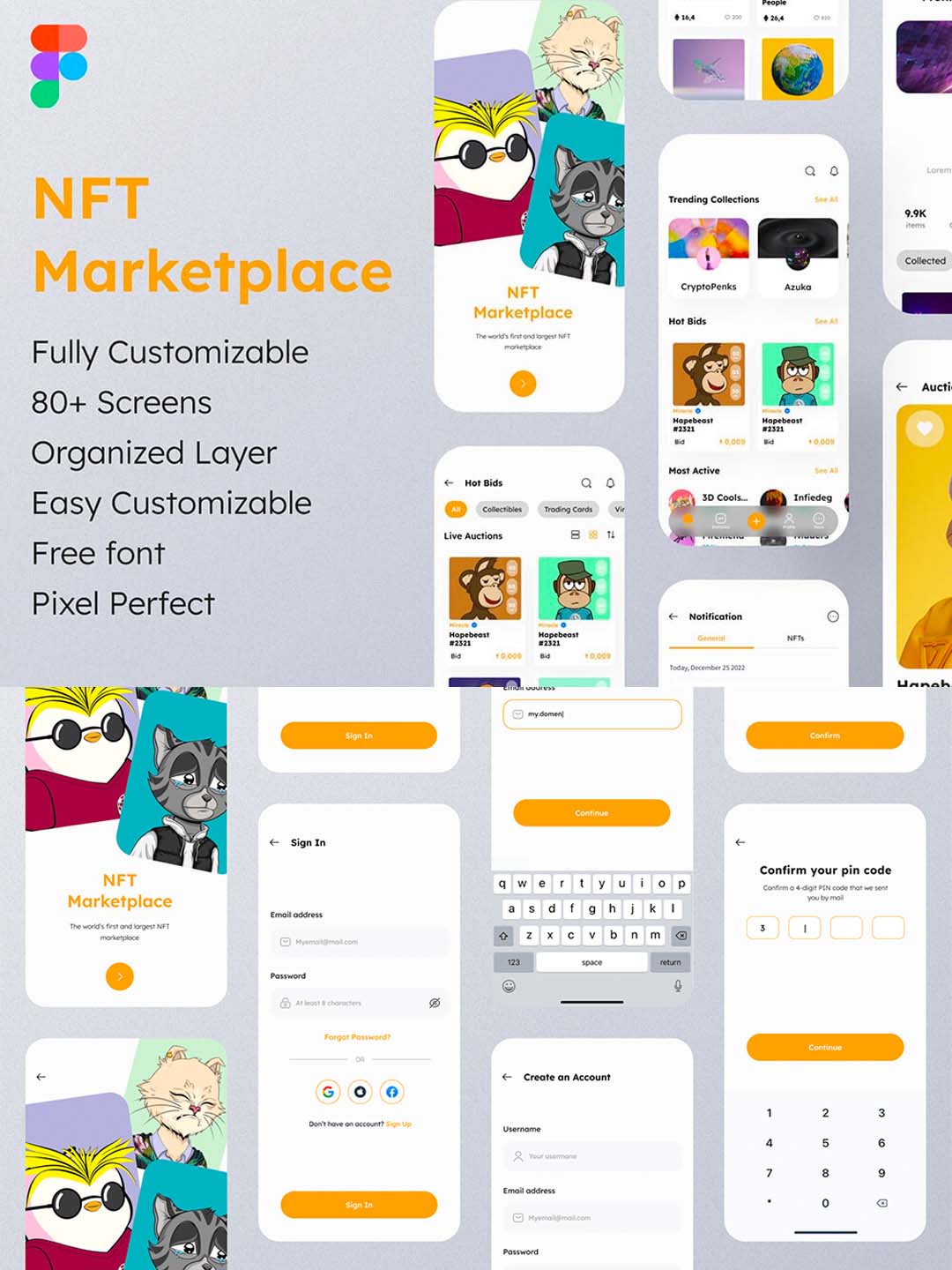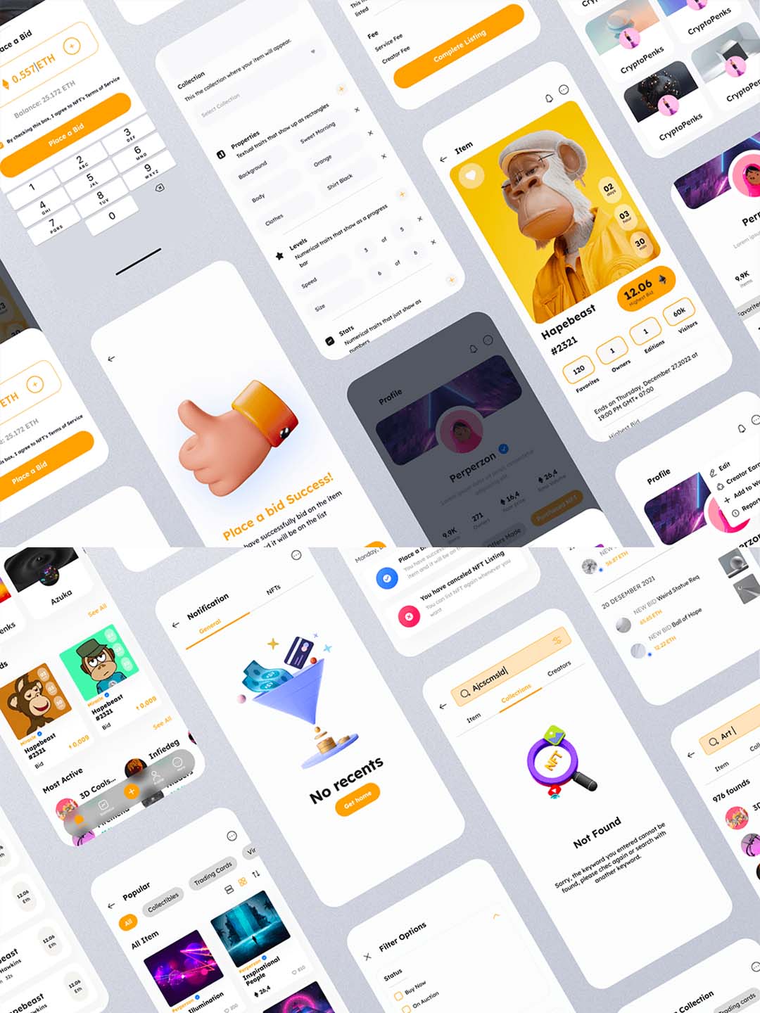 数字资产NFT虚拟市场APP UI资源素材模板figma套件