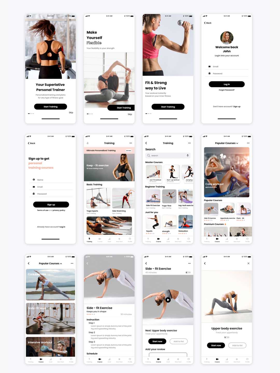 一套健身APP UI源文件下载,健身APP UI kit xd源文件下载