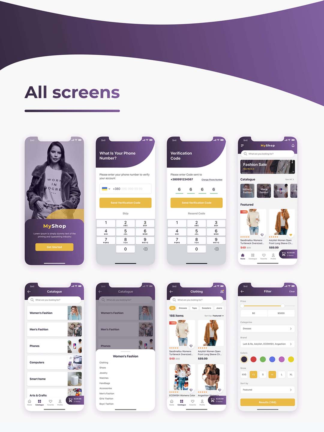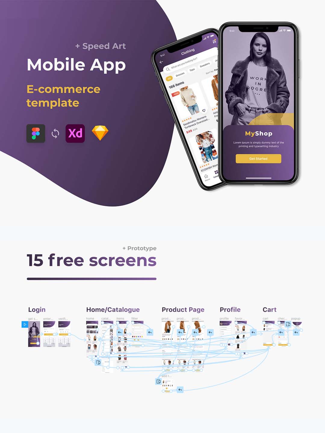 设计大气的服装类App,共15个屏幕,sketch,figma,xd源文件