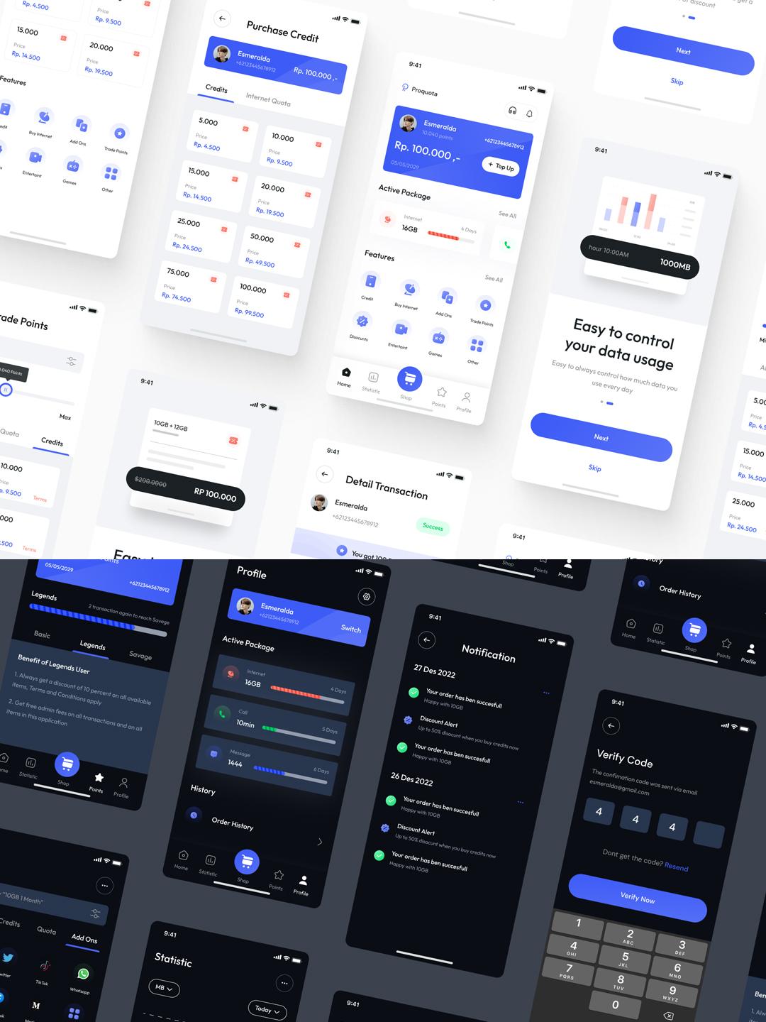 70页明暗插画风旅游app设计figma,xd,psd格式